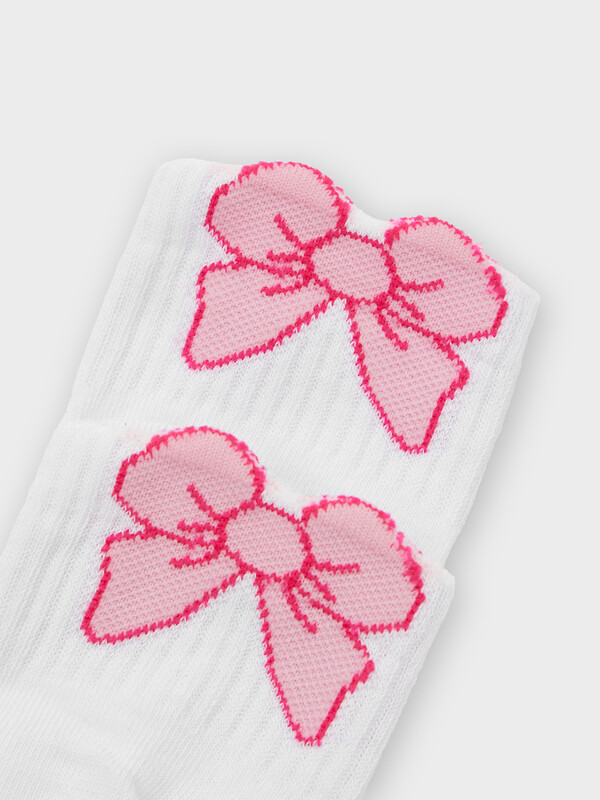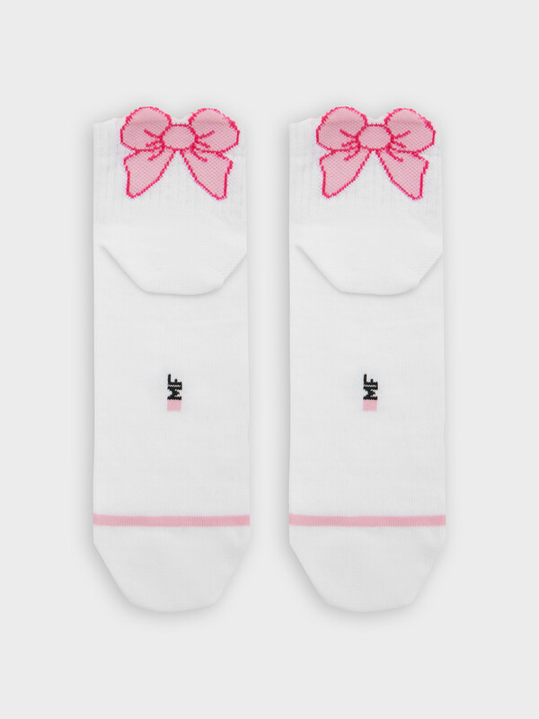 рис.3193 Гладкий детский носок с резинкой, средней высоты и рисунком в виде бантика.