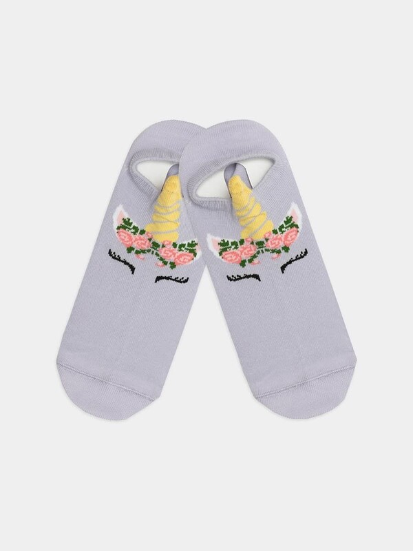 рис.1942 Детский носок гладкий суперкороткий с рисунком в виде единорога и3-д рисунком.