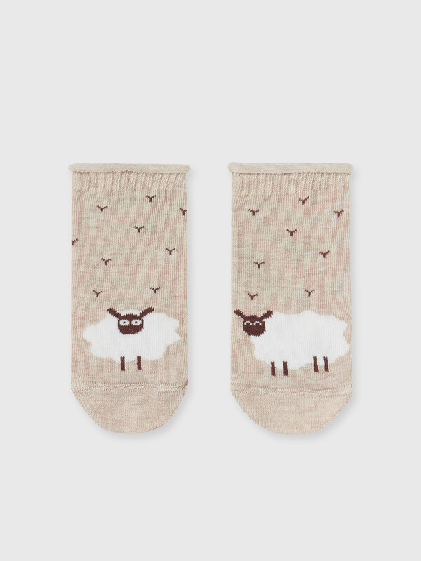 рис.2385 Детский гладкий носок без борта, с рисунком в виде барашков
