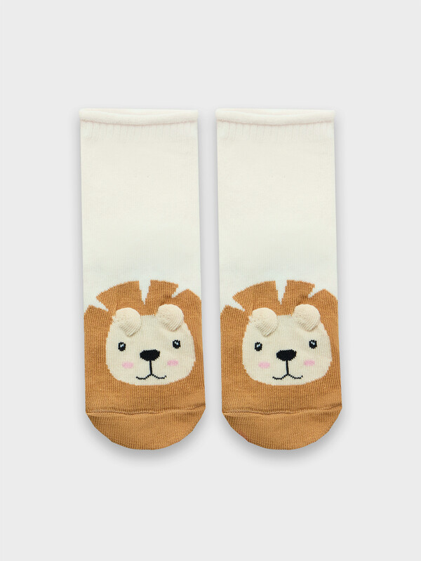 рис.2934 Детские гладкие носки без борта, с рисунком в виде львенка и цветным мыском.