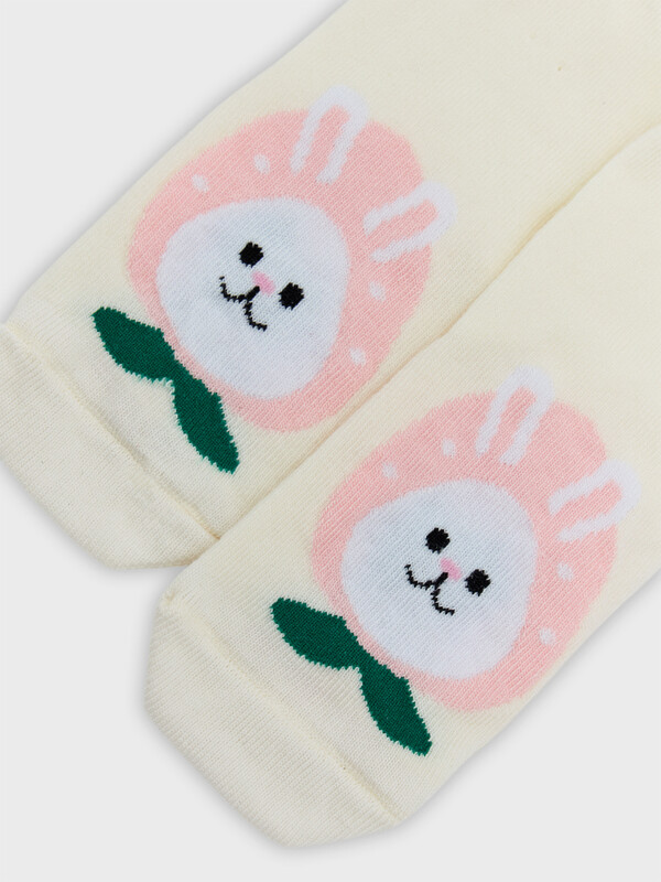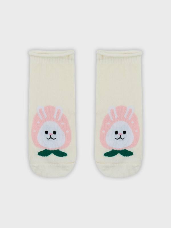 рис.3245 Детские классические носки без борта, с рисунком в виде зайчика и силиконом на стопе.