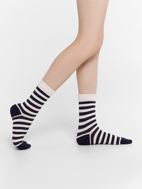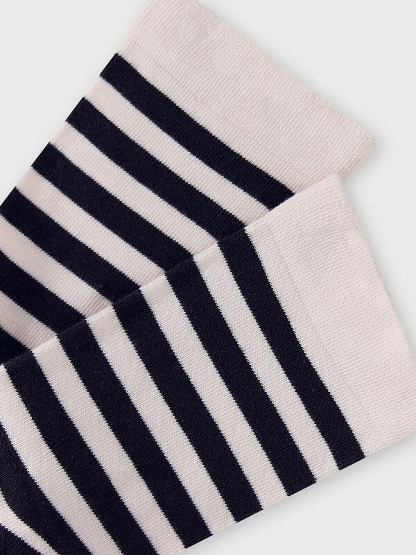 Носки детские из высококачественного хлопка с высокой резинкой и рисунком в виде поперечных полосок. Натуральные волокна отлично пропускают воздух и впитывают влагу, дарят ощущение комфорта в течение дня. Благодаря небольшому количеству эластана в составе, носки удобно сидят на ножке и не сползают, хорошо тянутся и легко надеваются. Пятка и мысок дополнительно укреплены для защиты от протирания. Резинка мягко, но надежно удерживает носки, не оставляя на коже следов. Эти носки точно понравятся вашей маленькой моднице. Рекомендуем!