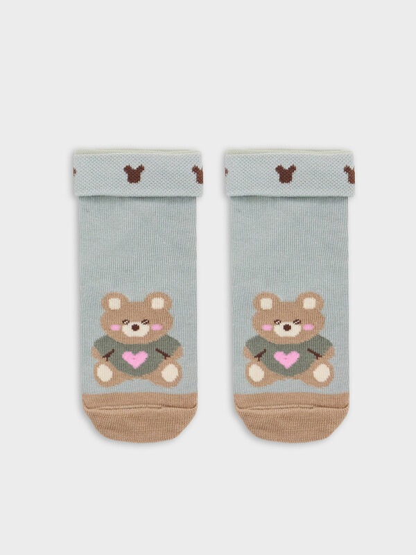 Детские носки для самых маленьких с отворотом на бортике, что добавляет им уюта и комфорта. Выполнены из высококачественного гребенного хлопка. Цветной мысок делает эти носки яркими и забавными, а рисунок в виде медведя непременно понравится вашему ребенку. Они не только согреют ножки вашего малыша, но и подарят ему радость и веселье каждый день. Идеально подойдут для повседневного использования и станут отличным дополнением к любому наряду. Рекомендуем!