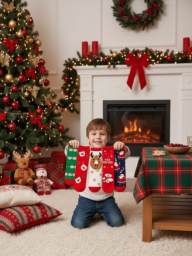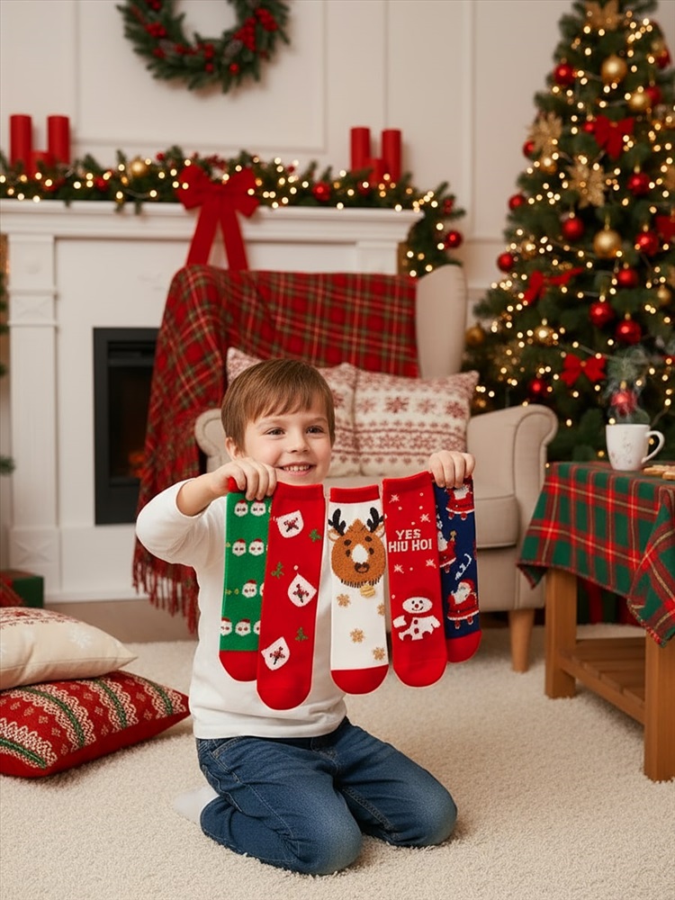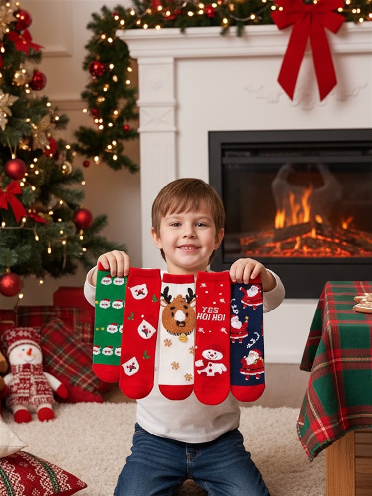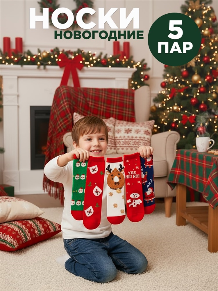 Детские, тёплые носки из хлопка, с новогодними рисунками - в ассортименте, подарят максимальный комфорт на протяжении всего дня.
