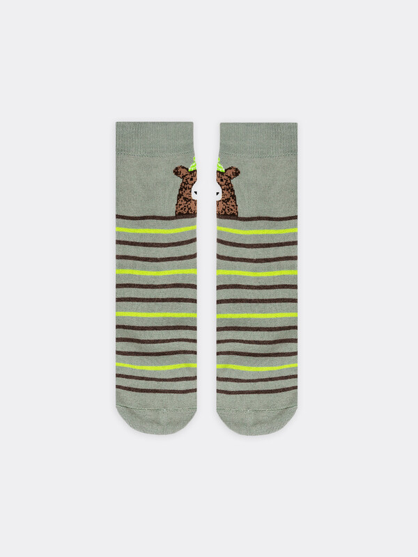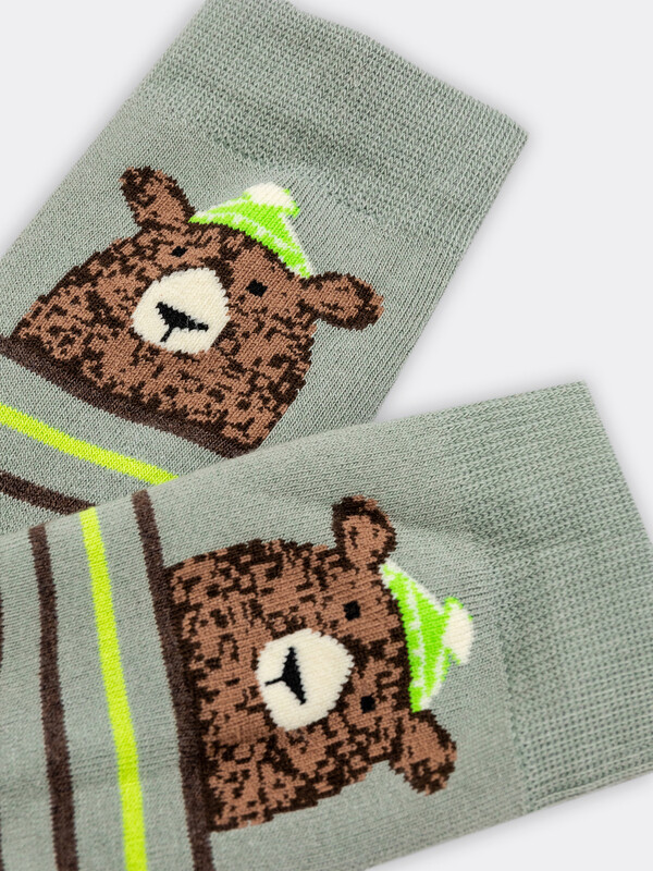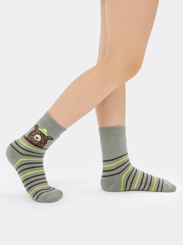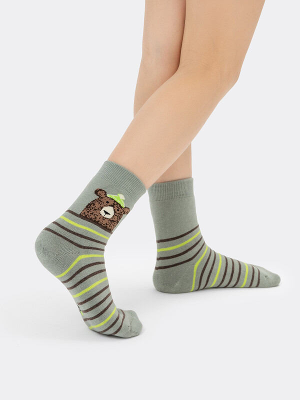 рис.1113 Детский махровый носок с рисунком в виде медведя и полосок