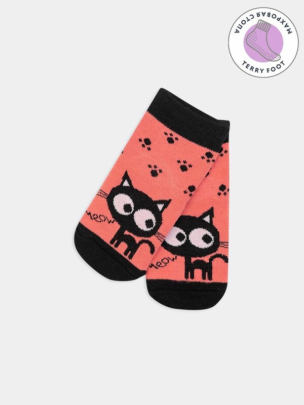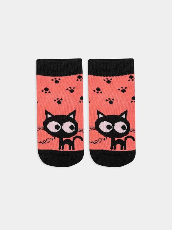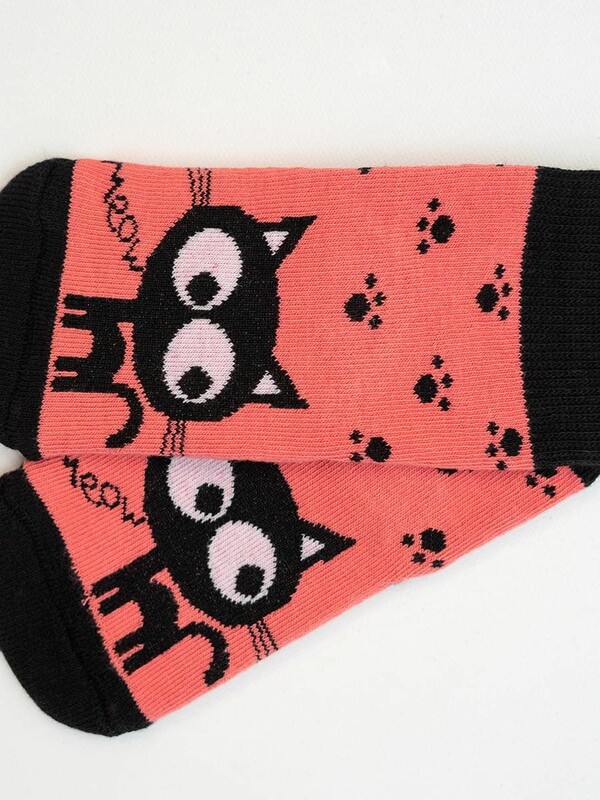 Рис. 207 Полуплюшевый детский носок с рисунком в виде черного кота и лапок.