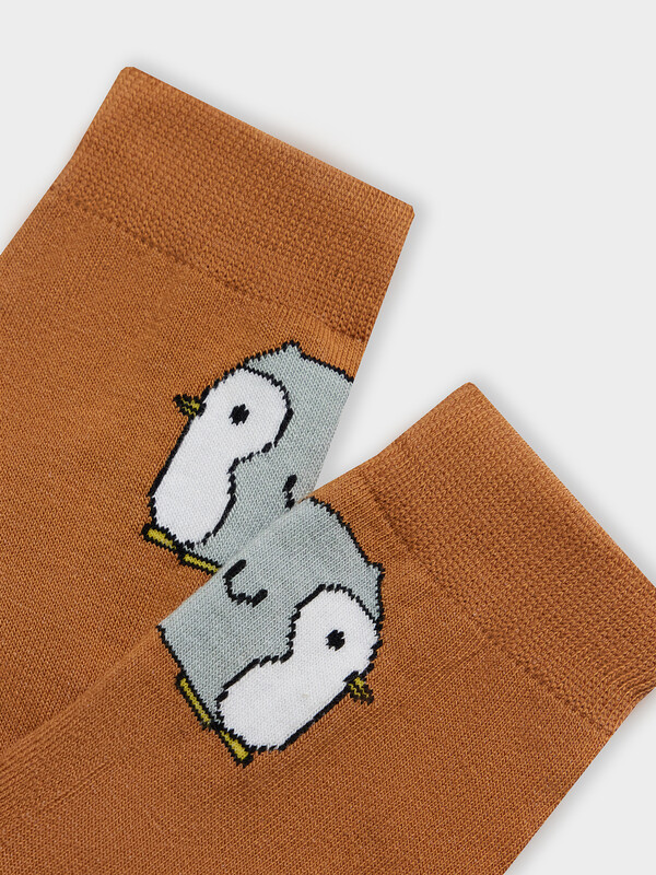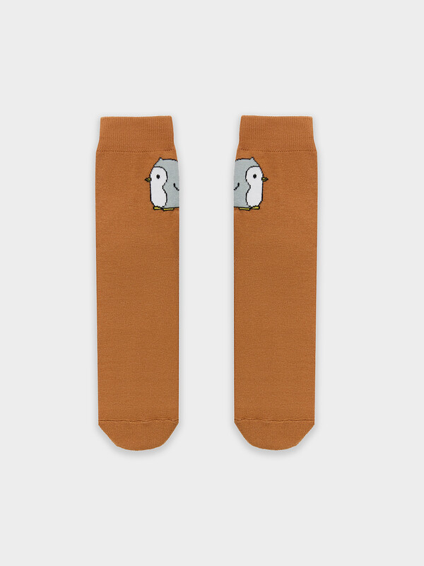 рис.2462 Детский классический носок с плюшевым следом и рисунком в виде пингвинчика.