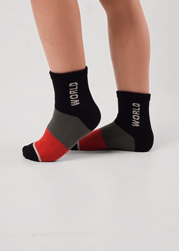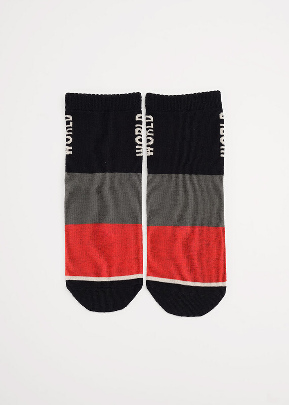 Носки детские с контрастными широкими полосами и надписью ""WORLD"" .