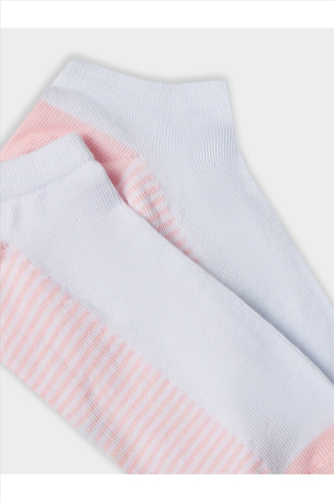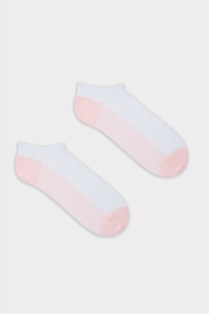 Детский укороченный носок с рисунком в виде полосок в нижней части следа и цветными пяткой и мыском.