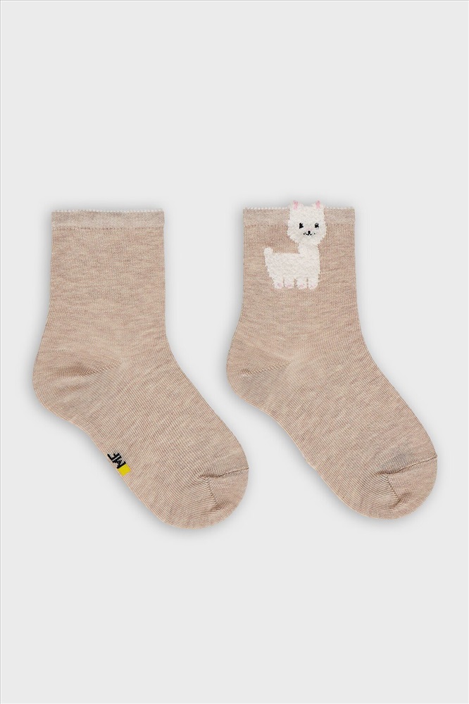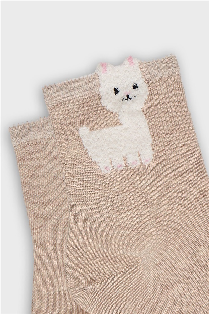 Сезон: Весна/Лето рис.3377 Детские классические носки с рисунком в виде ламы и элементом пикота на бортике.