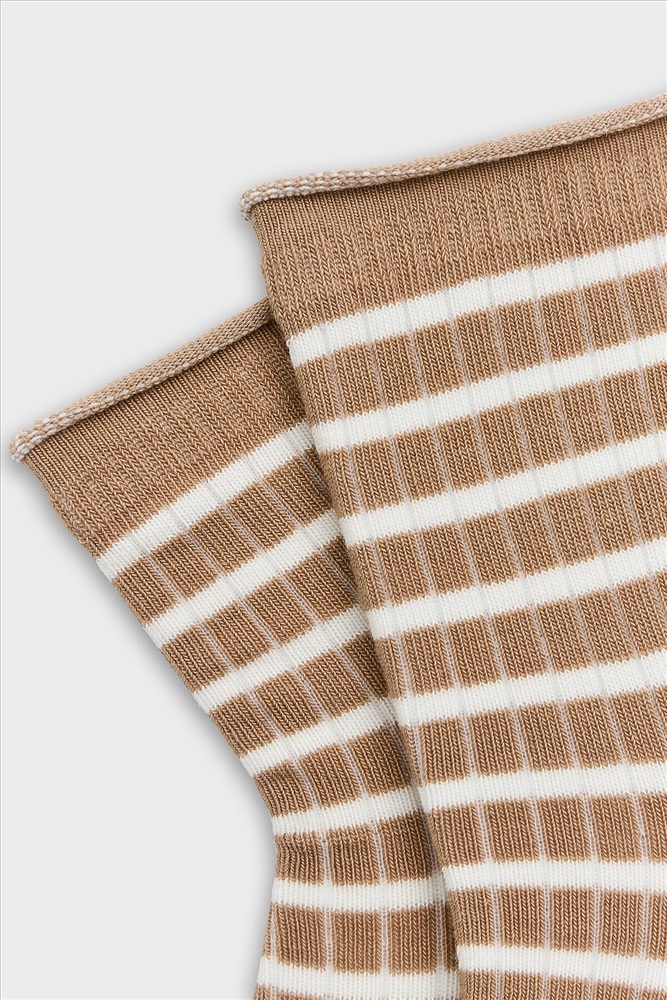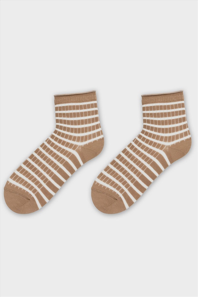 ID товара: 1235863 Состав: 75% хлопок; 23% ПА; 2% эластан Сезон: Весна/Лето Рисунок: Полоски Вид носков/гольф: Фантазийные Страна бренда: Беларусь Страна производства: Беларусь рис.3371 Детские гладкие носки без борта, с рисунком в виде полосок. Комментарии к товару