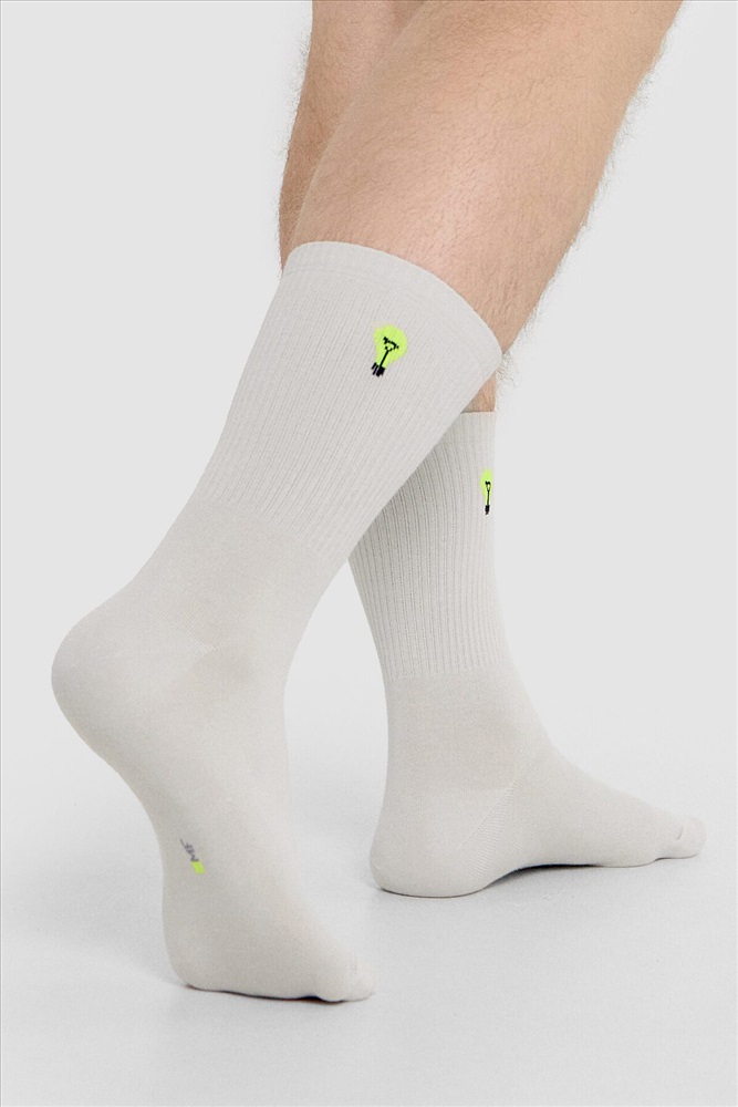 ID товара: 1042772 Состав: 60% Хлопок; 37% Полиамид; 3% Эластан Сезон: Демисезон Основная ткань: Хлопок Вид носков/гольф: Фантазийные Страна бренда: Беларусь Страна производства: Беларусь рис.2639 Мужской носок с высоким плотным бортом и рисунком в виде лампочки. Комментарии к товару