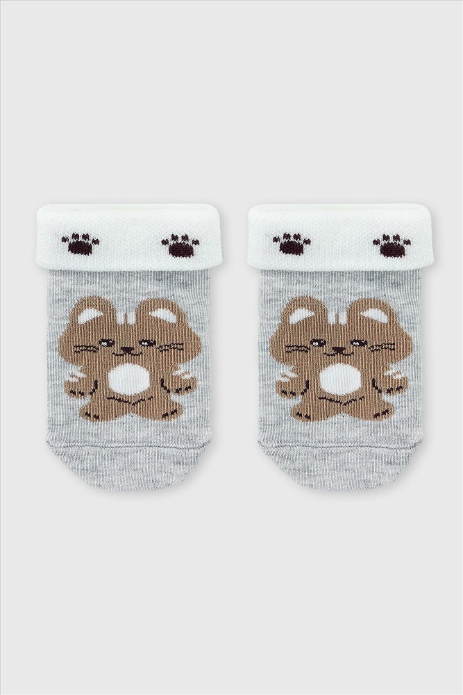 рис.2792 Детский классический носок с отворотом на бортике и рисунком в виде зайчика.