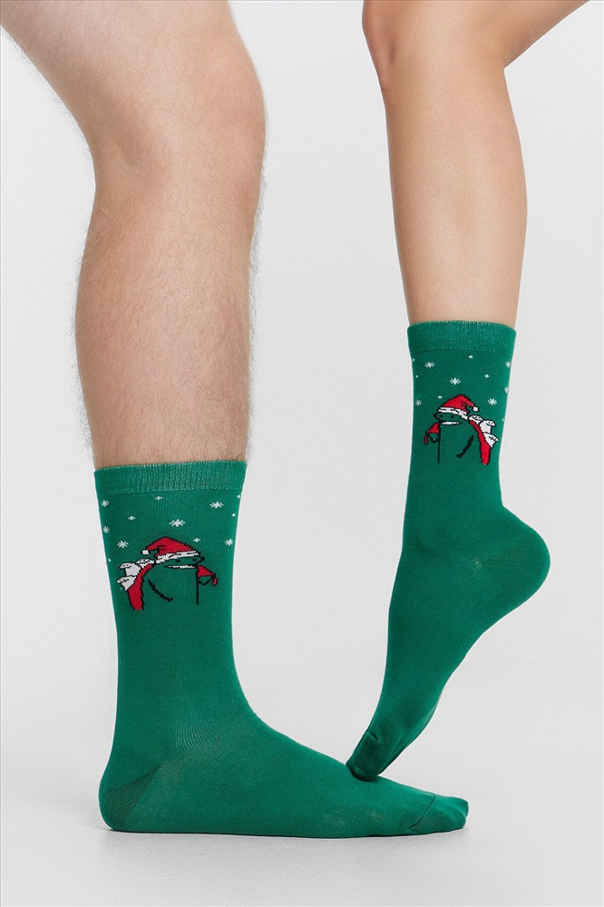 рис.2987 Носки унисекс классические, гладкие с новогодним рисунком.