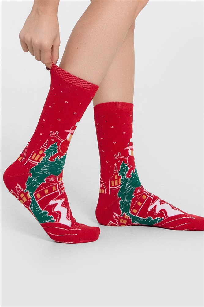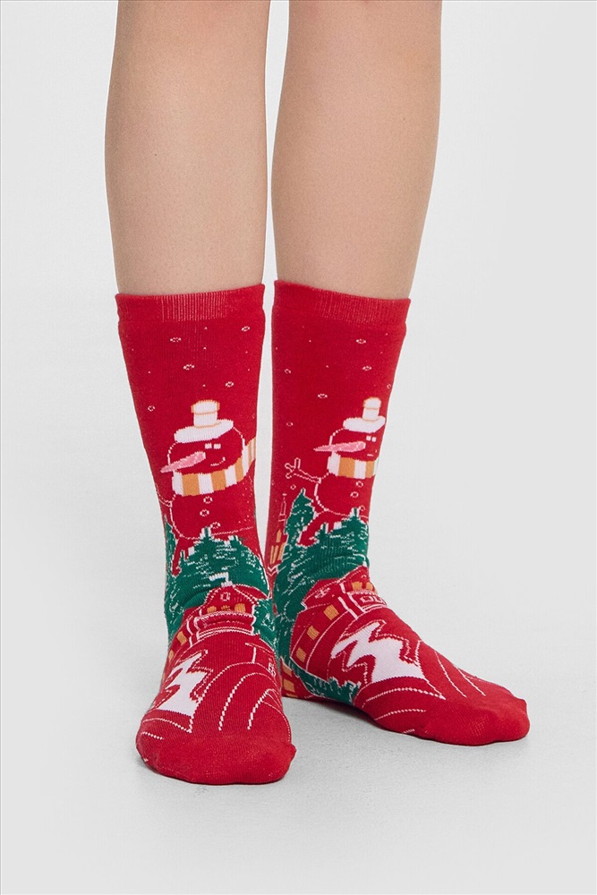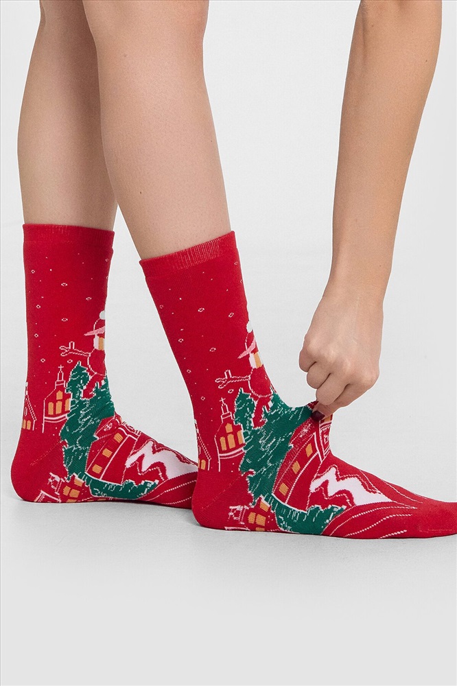 рис.2974 Женские махровые классические носки с зимним рисунком.