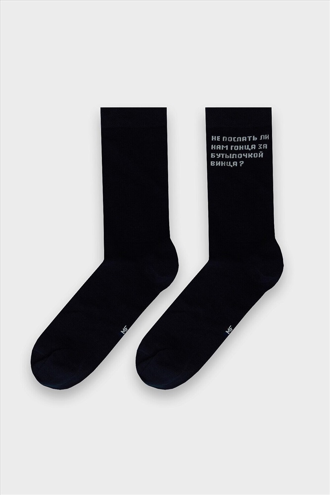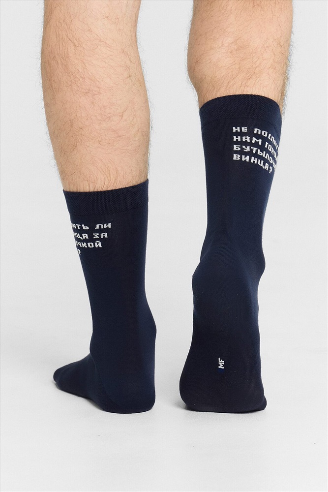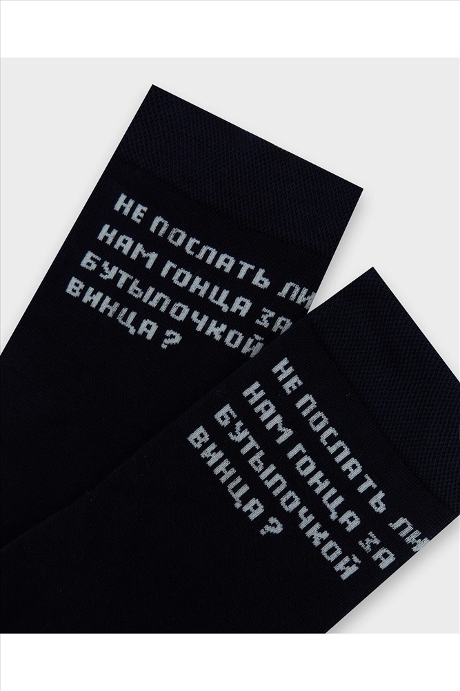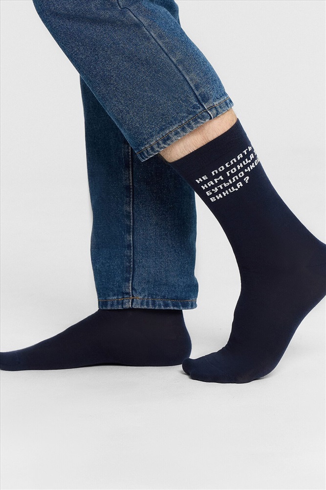 рис.3026 Мужской носок классический, высокий, с рисунком в виде надписи "Не послать ли.....".