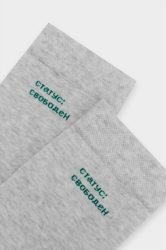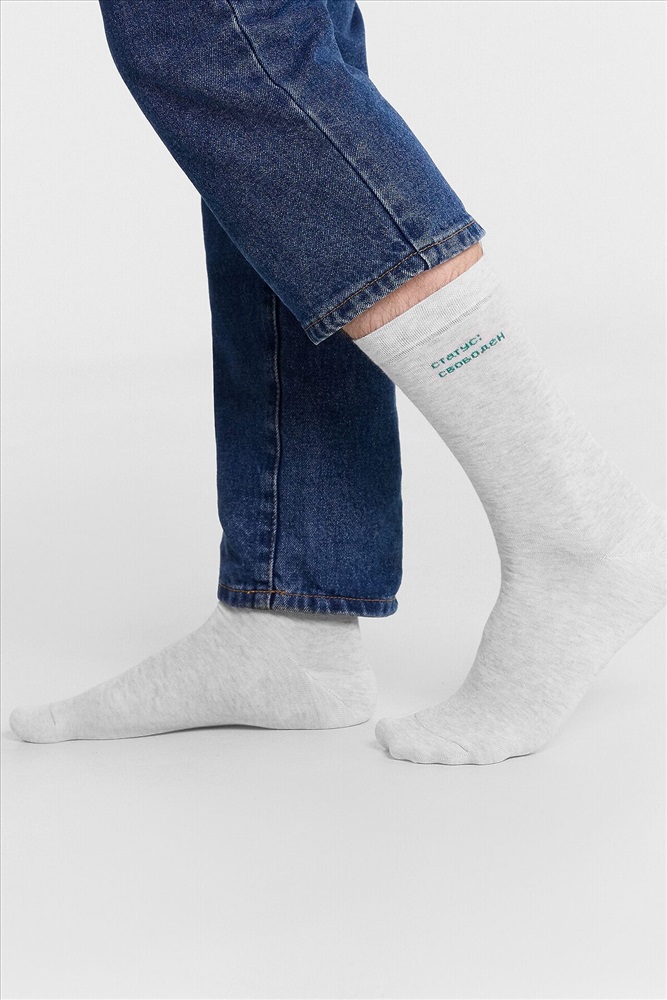 ID товара: 1191751 Состав: 77% Хлопок; 21% Полиамид; 2% Эластан Сезон: Демисезон Утеплитель: Хлопок Основная ткань: Хлопок Вид носков/гольф: Фантазийные Страна бренда: Беларусь Страна производства: Беларусь рис.3032 Мужской носок классический, высокий, с рисунком в виде надписи "Статус свободен". Комментарии к товару