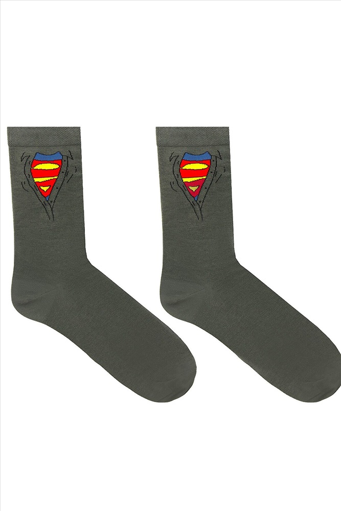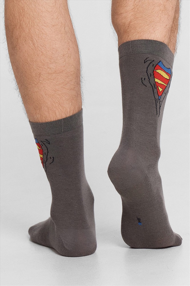 Высокие мужские носки с узором в виде логотипа Супермена. Модель выполнена из гребенного хлопка. Мягкость, тонкость и прочность пряжи обеспечивают комфорт в течение всего дня. Натуральные волокна пропускают воздух и впитывают влагу, позволяя коже дышать. Добавление небольшого количества эластана гарантирует хорошее облегание стопы и сохранение формы изделия даже после множества стирок. Мягкая эластичная резинка надежно удерживает носки на ноге, не создавая дискомфорта. А усиленные пятка и мысок увеличивают защиту от протирания и повышают износостойкость. Рекомендуем!