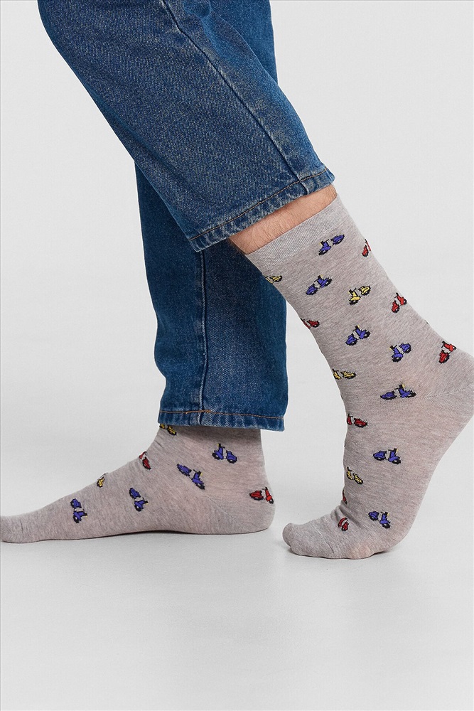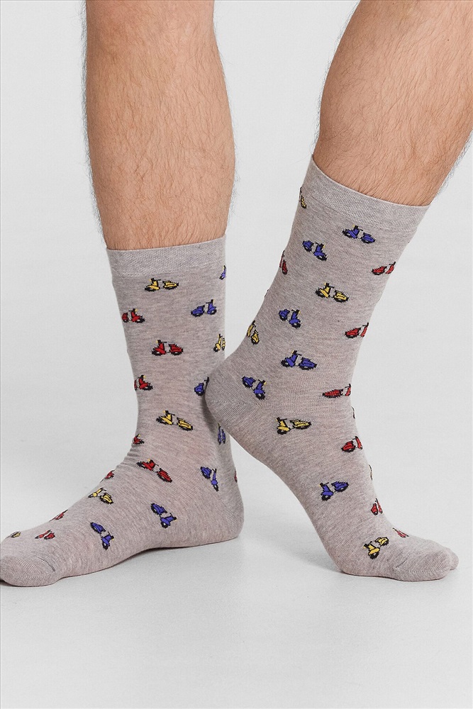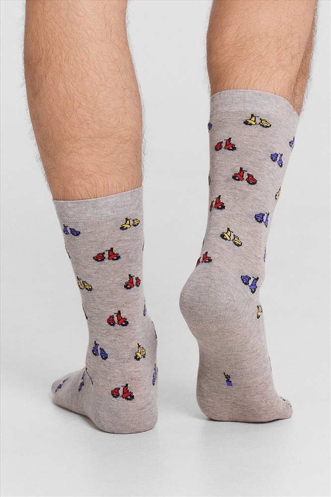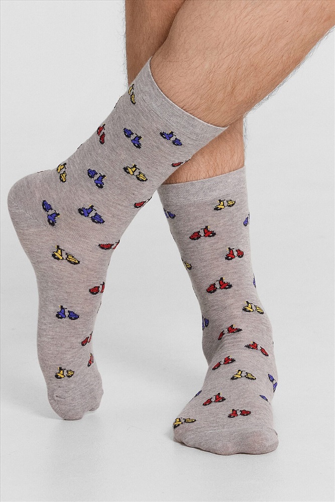 ID товара: 1191761 Состав: 68% Хлопок; 30% Полиамид; 2% Эластан Сезон: Демисезон Утеплитель: Хлопок Основная ткань: Хлопок Вид носков/гольф: Фантазийные Страна бренда: Беларусь Страна производства: Беларусь рис.3046 Мужской носок классический, высокий, с рисунком в виде мотоциклов. Комментарии к товару