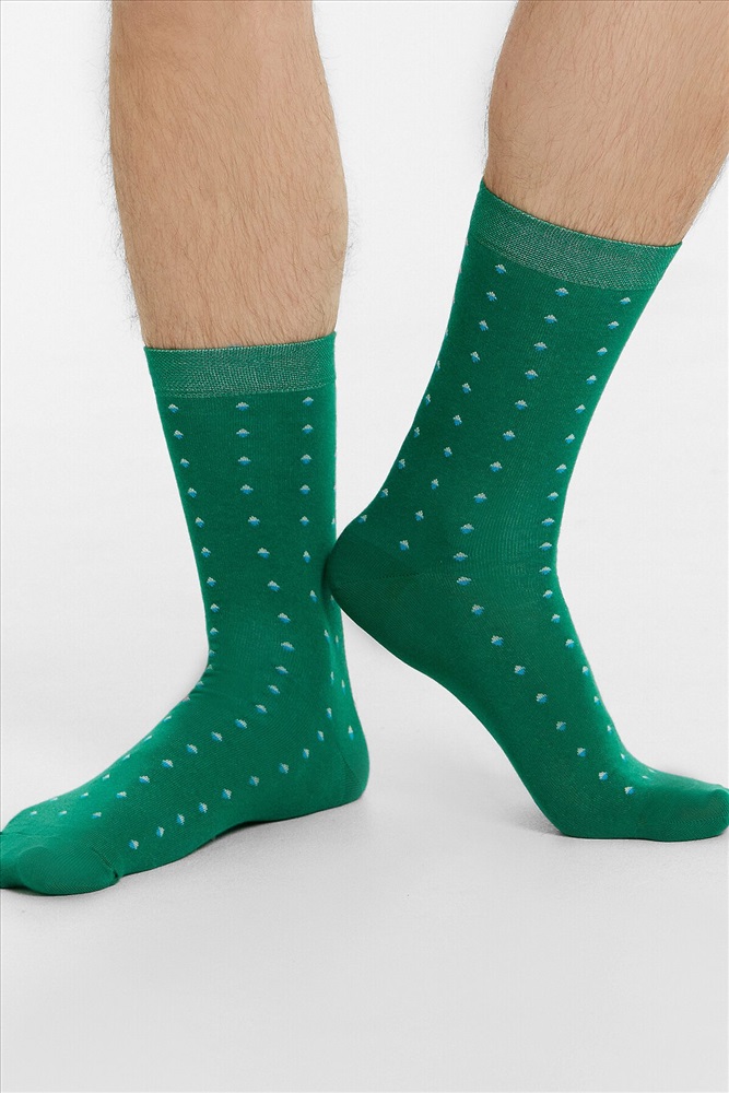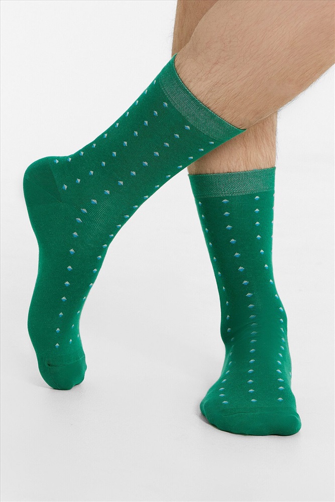 рис.3075 Мужской носок классический, высокий, с рисунком в виде мелких ромбиков.