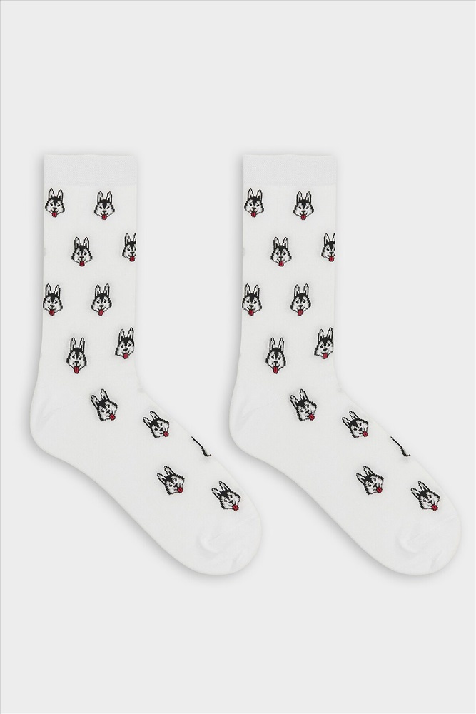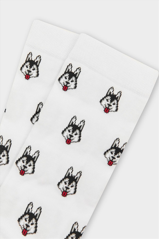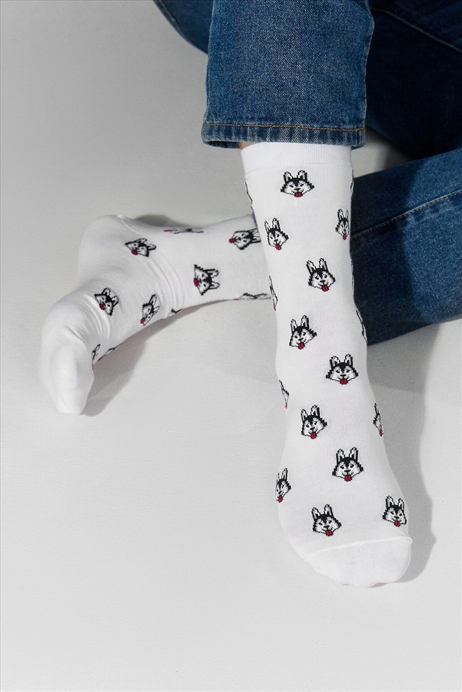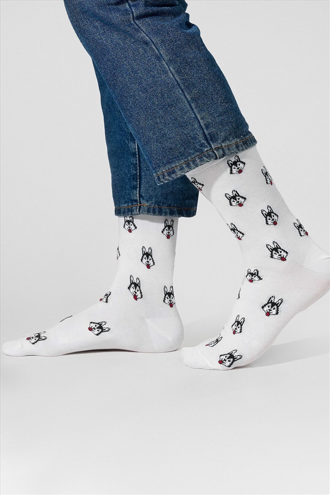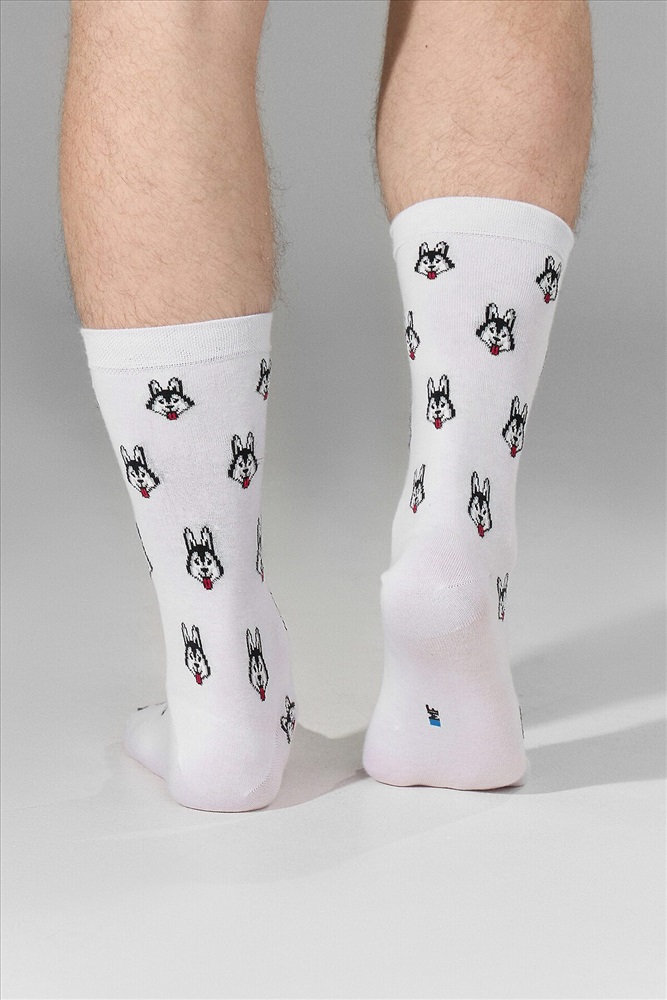 рис.3088 Мужской носок классический, высокий, с рисунком в виде хаски.