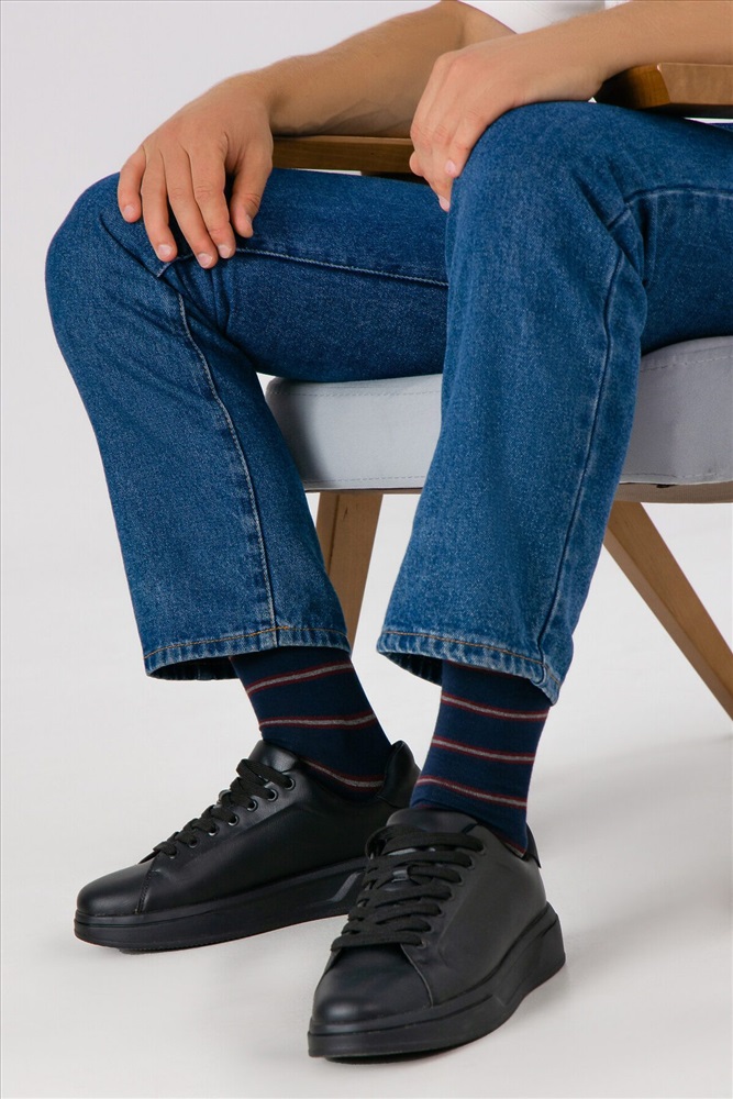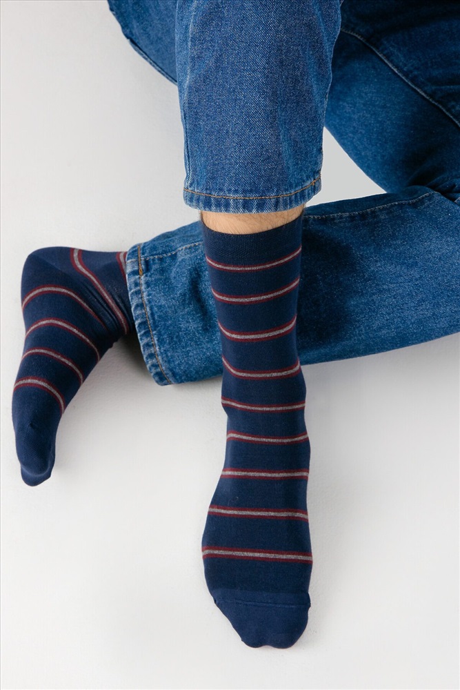 рис.3320 Мужской носок классический, высокий, с рисунком в виде поперечной полоски.
