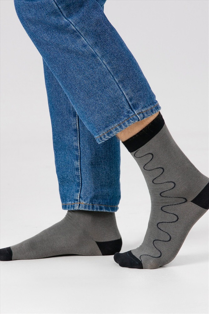 ID товара: 1191771 Состав: 72% Хлопок; 26% Полиамид; 2% Эластан Сезон: Демисезон Основная ткань: Хлопок Вид носков/гольф: Фантазийные Страна бренда: Беларусь Страна производства: Беларусь рис.3323 Мужской носок классический, с рисунком в виде волны. Комментарии к товару