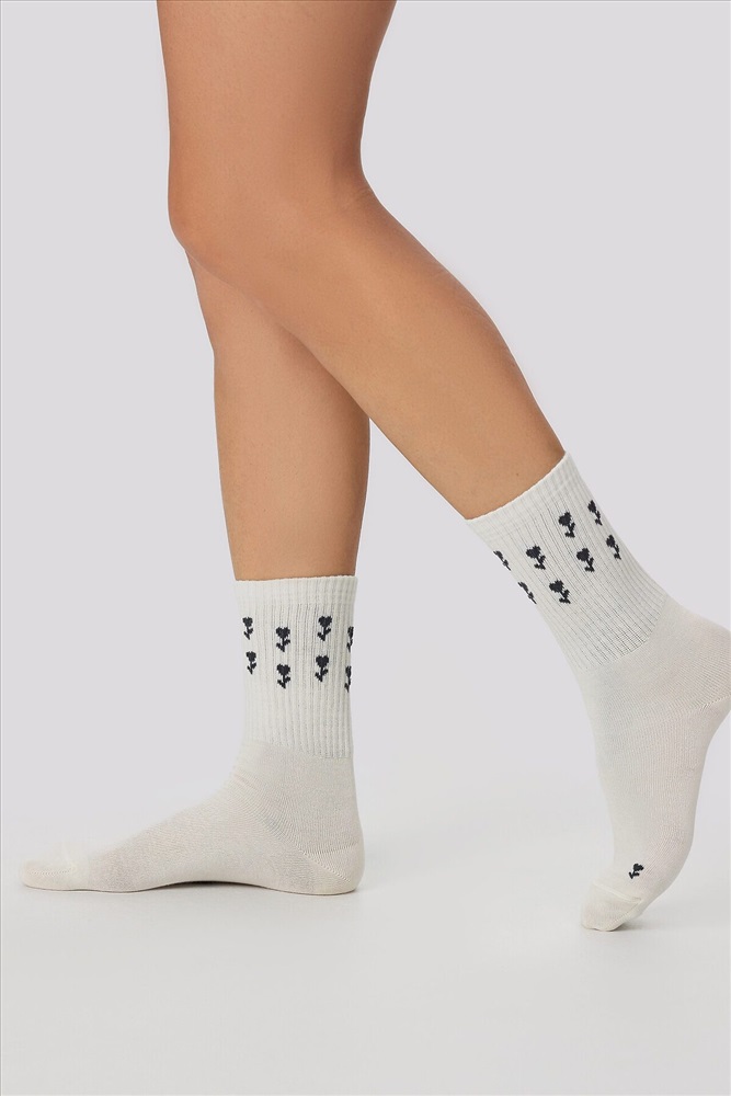 ID товара: 1192240 Состав: 65% Хлопок; 30% Полиамид; 5% Эластан Сезон: Демисезон Основная ткань: Хлопок Вид носков/гольф: Фантазийные Страна бренда: Беларусь Страна производства: Беларусь рис.3326 Женские носки высокие с плотным бортом и рисунком в виде цветов. Комментарии к товару