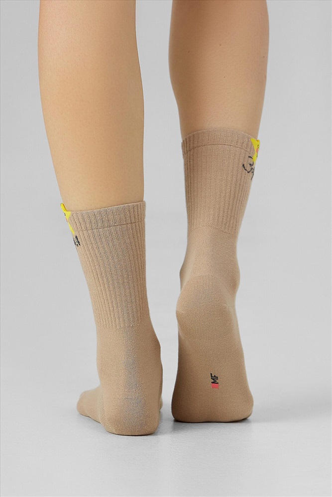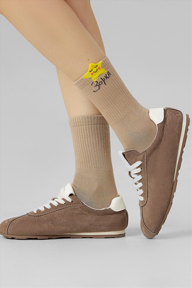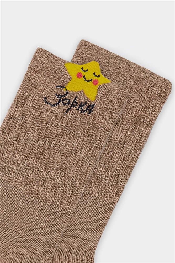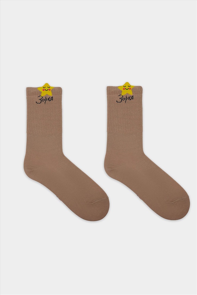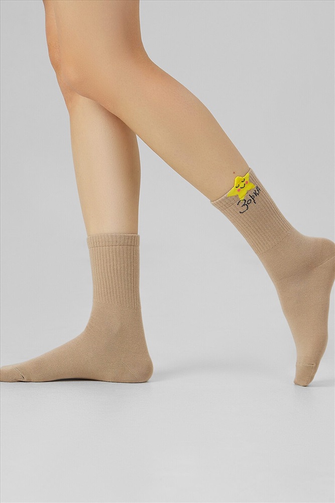 рис.3328 Женские носки высокие с плотным бортом с 3Д рисунком в виде звездочки и надписью "Зорка".
