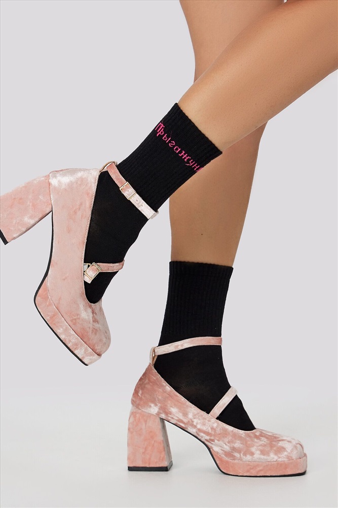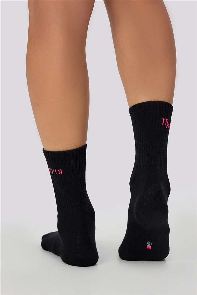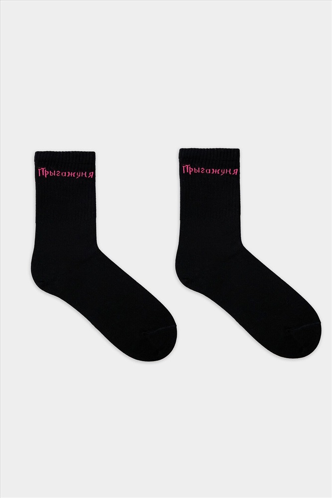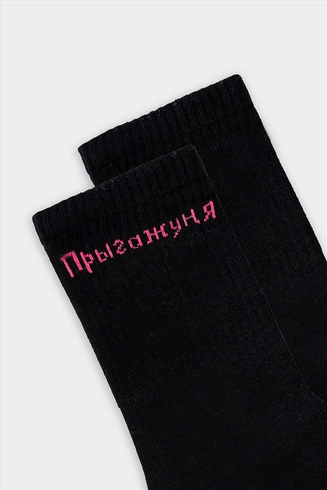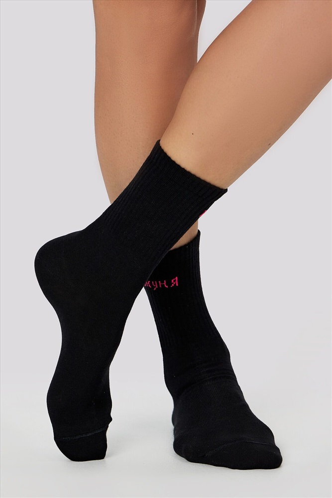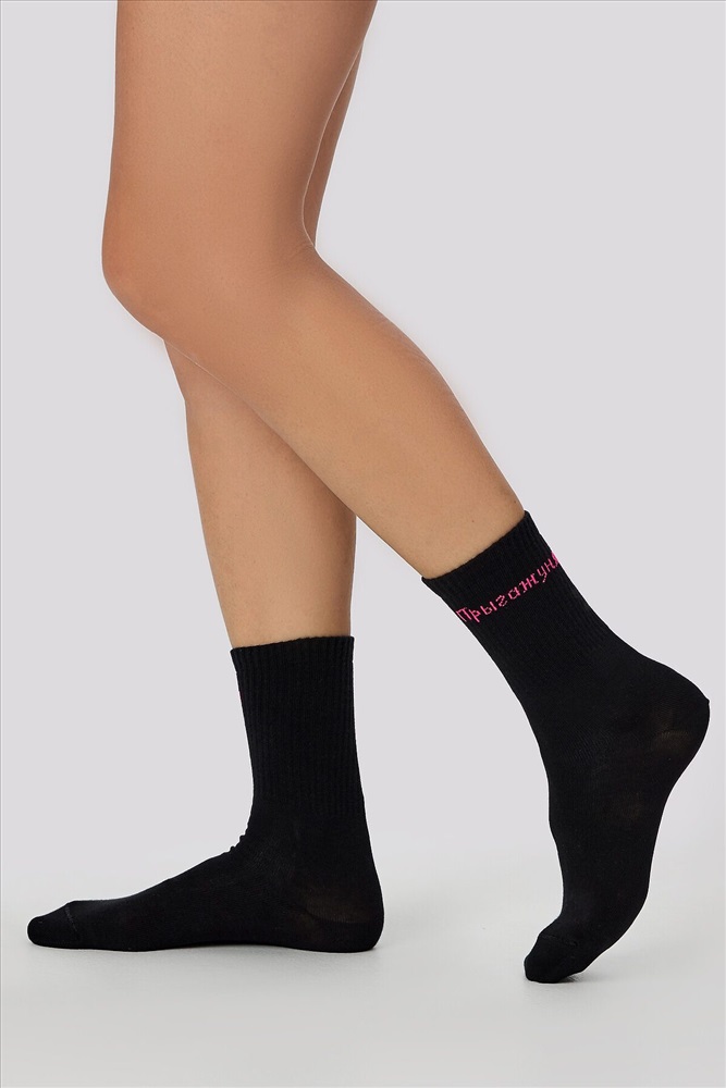 рис.3332 Женские носки высокие с плотным бортом и рисунком в виде надписи "Прыгажуня".