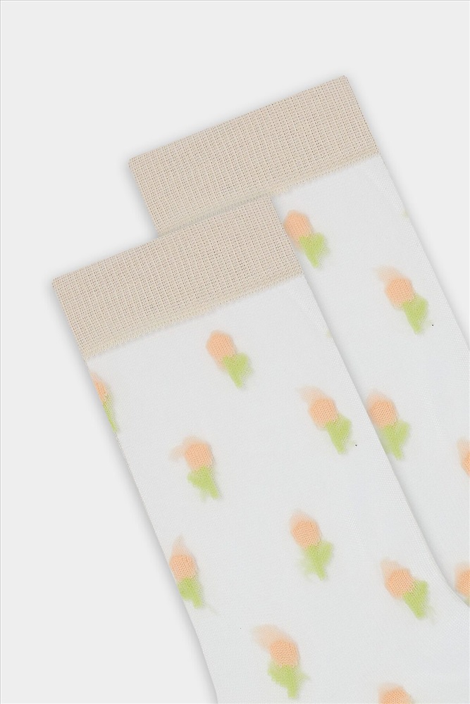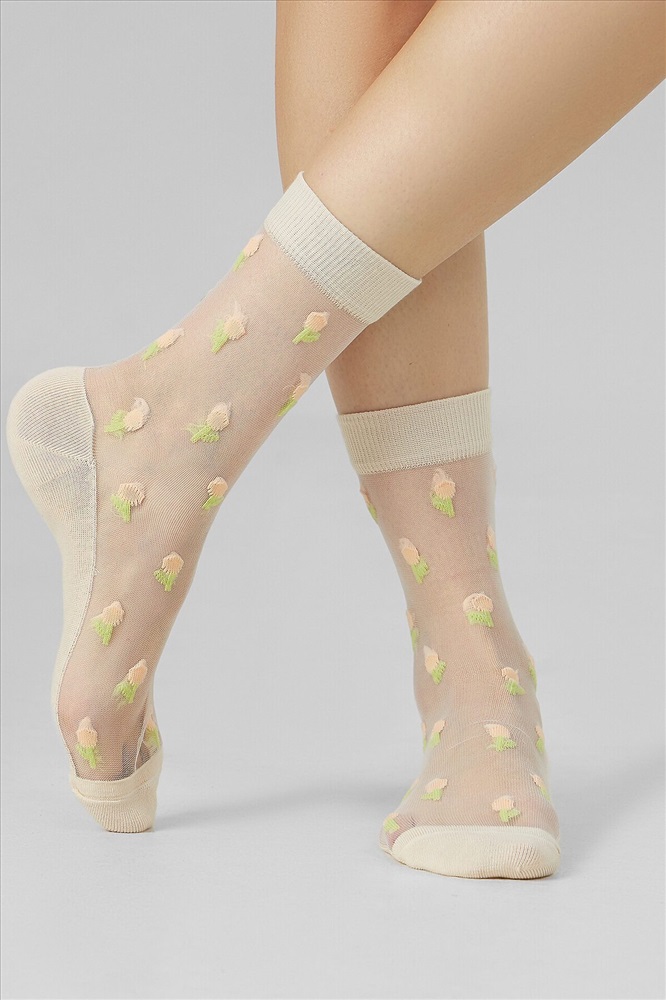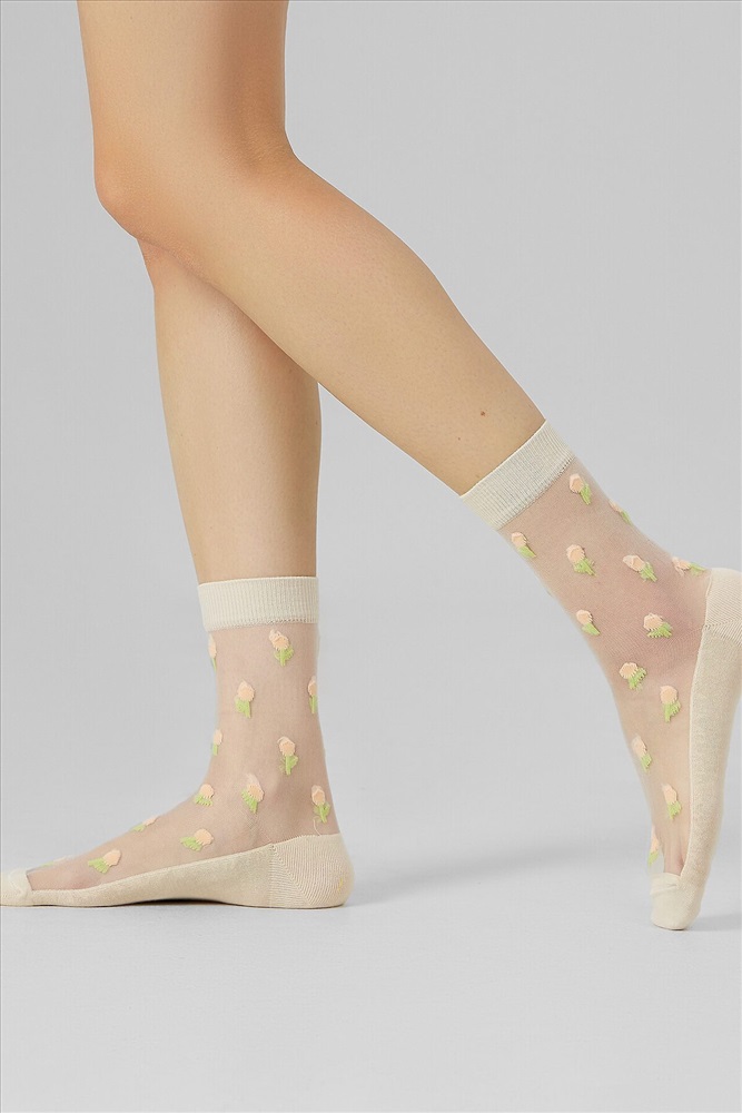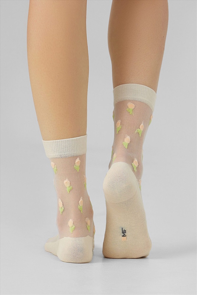 ID товара: 1192253 Состав: 60% Хлопок; 39% Полиамид; 1% Эластан Сезон: Демисезон Основная ткань: Хлопок Вид носков/гольф: Фантазийные Страна бренда: Беларусь Страна производства: Беларусь рис.3148 Женские носки классической длины с прозрачной зоной на паголенке и верхней части следа с рисунком в виде мелких тюльпанчиков. Комментарии к товару