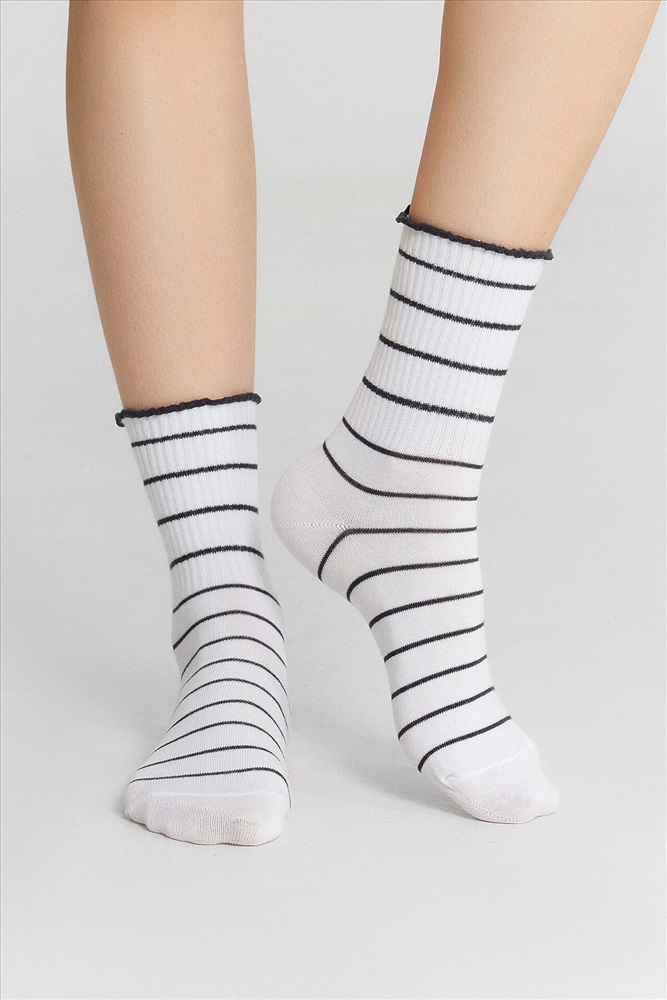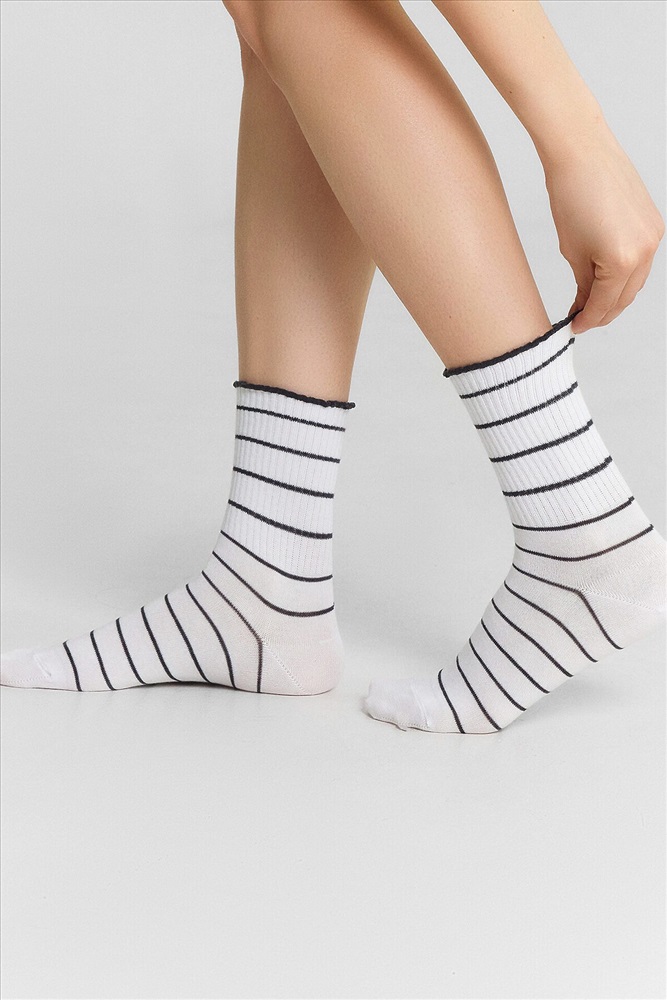 Эти женские высокие носки — стильный и удобный аксессуар, который дополнит ваш образ яркими акцентами. Модель выполнена из хлопка — мягкого, натурального материала, который обеспечивает комфорт, воздухопроницаемость и приятные тактильные ощущения при носке. Рисунок в виде горизонтальных полос придает носкам оригинальность и выразительность, позволяя легко сочетать их с различной одеждой и обувью. Благодаря удлиненному крою, носки обеспечивают дополнительное тепло и удобную посадку, идеально подходя как для повседневных образов, так и для стильных акцентов. Практичный и стильный выбор для тех, кто ценит комфорт и индивидуальность!