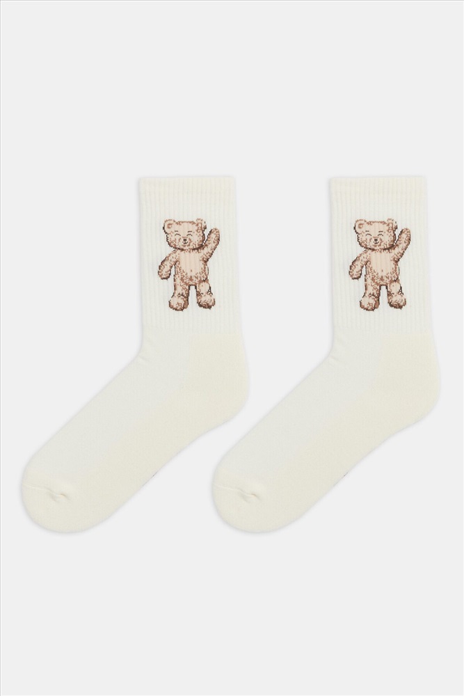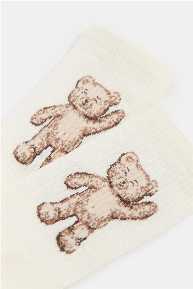 ID товара: 1192291 Состав: 75% Хлопок; 23% Полиамид; 2% Эластан Сезон: Демисезон Основная ткань: Хлопок Вид носков/гольф: Фантазийные Страна бренда: Беларусь Страна производства: Беларусь рис.2531 Женские носки с высоким плотным бортом, плюшевым следом и рисунком в виде медвежат. Комментарии к товару