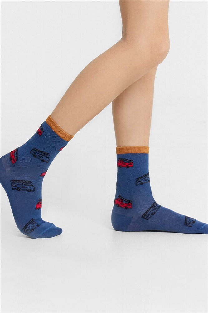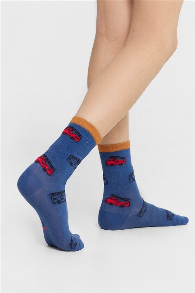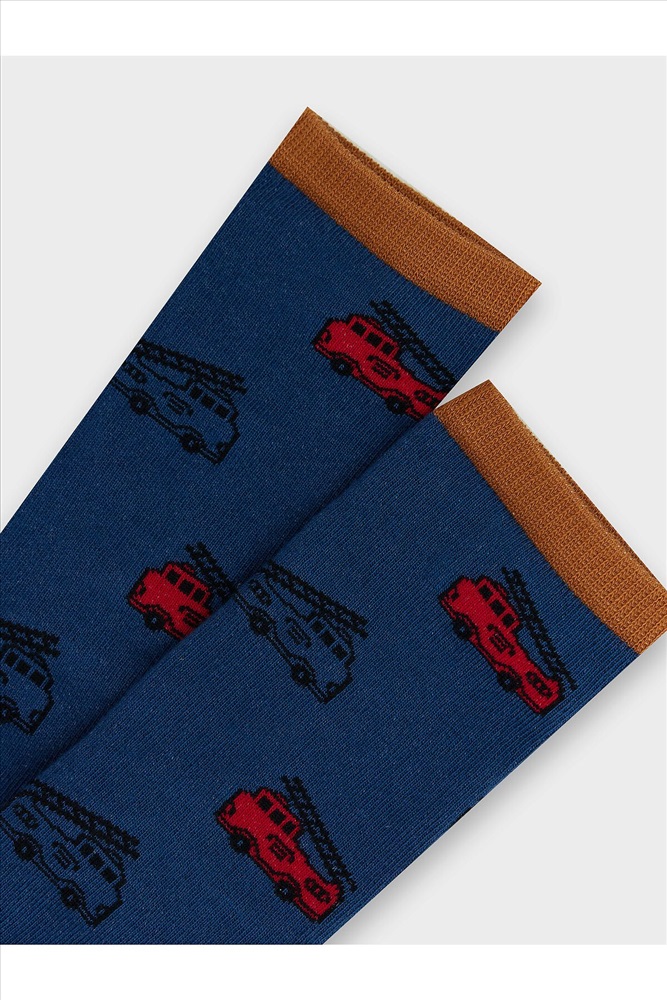 ID товара: 1192821 Состав: 72% Хлопок; 26% Полиамид; 2% Эластан Сезон: Демисезон Основная ткань: Хлопок Вид носков/гольф: Фантазийные Страна бренда: Беларусь Страна производства: Беларусь рис.3070 Детские классические носки с рисунком в виде машинок с цветным бортиком. Комментарии к товару