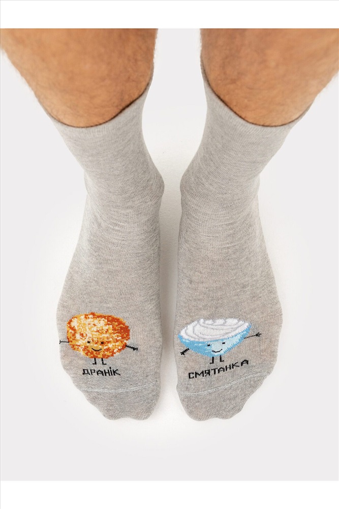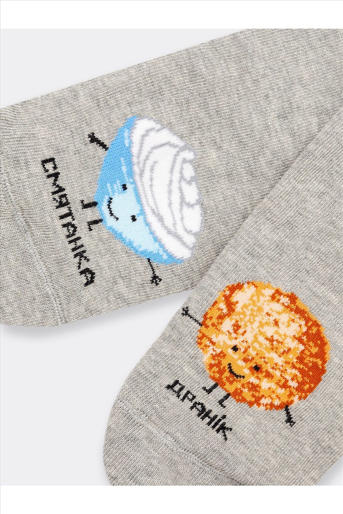 ID товара: 1193055 Состав: 75% Хлопок; 23% Полиамид; 2% Эластан Сезон: Демисезон Основная ткань: Хлопок Вид носков/гольф: Фантазийные Страна бренда: Беларусь Страна производства: Беларусь рис.2717 Носок классический гладкий с рисунком на верхней части следа в виде драника и сметанки. Комментарии к товару