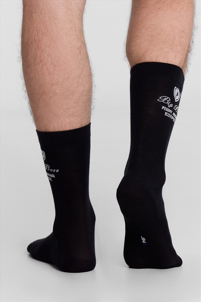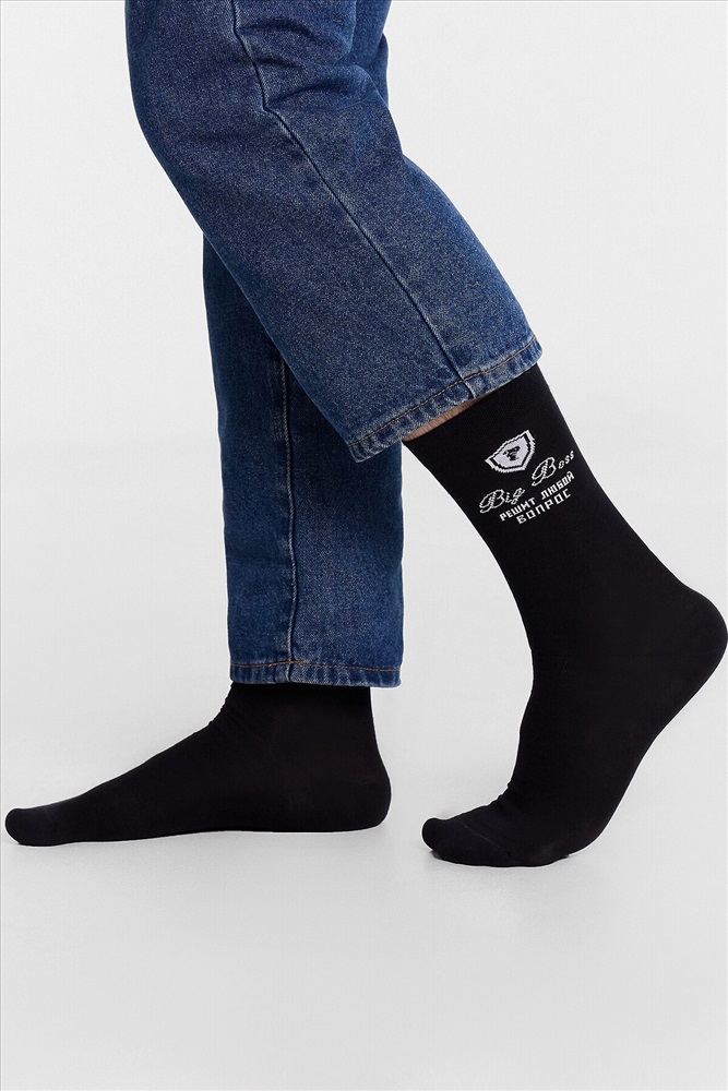 Высокие мужские носки с надписью "BIG BOSS, решит любой вопрос". Модель выполнена из гребенного хлопка. Мягкость, тонкость и прочность пряжи обеспечивают комфорт в течение всего дня. Натуральные волокна пропускают воздух и впитывают влагу, позволяя коже дышать. Добавление небольшого количества эластана гарантирует хорошее облегание стопы и сохранение формы изделия даже после множества стирок. Мягкая эластичная резинка надежно удерживает носки на ноге, не создавая дискомфорта. А усиленные пятка и мысок увеличивают защиту от протирания и повышают износостойкость. Рекомендуем!