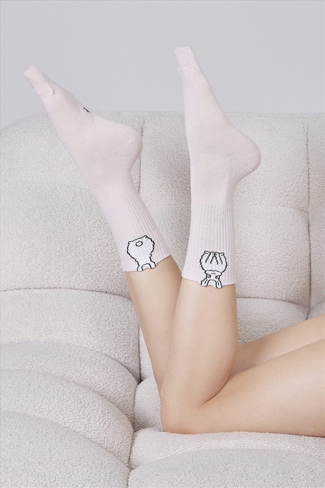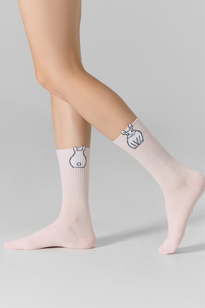 Страна производства: Беларусь рис.3327 Женские носки высокие с плотным бортом, рисунком в виде кролика и участком пикота .
