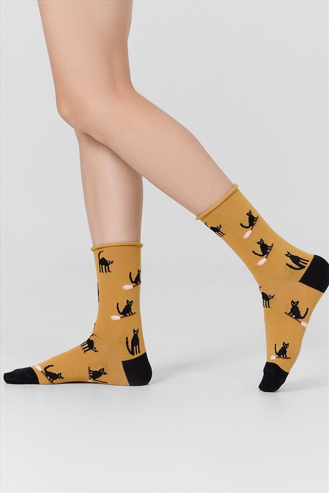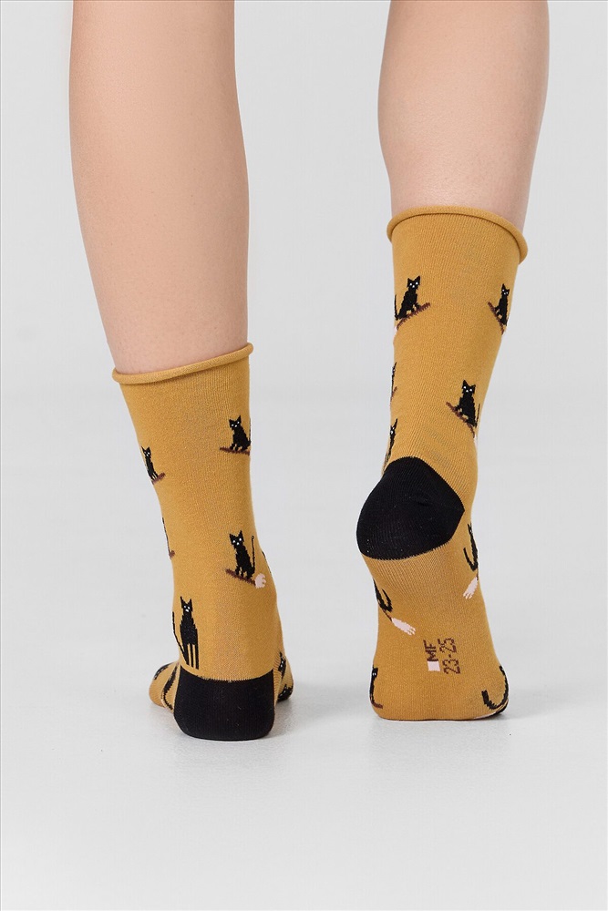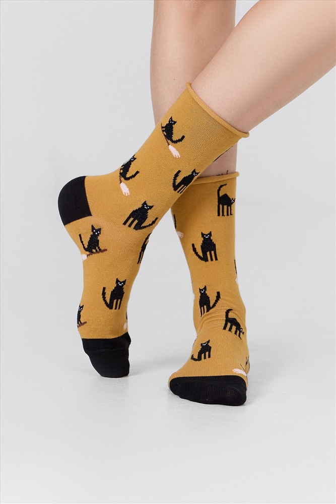 рис.3329 Женские классические носки с рисунком в виде котиков.