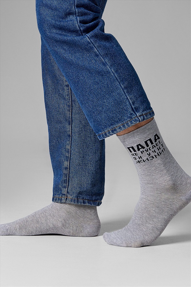 ID товара: 1200416 Состав: 75% Хлопок; 23% Полиамид; 2% Эластан Сезон: Демисезон Основная ткань: Хлопок Вид носков/гольф: Фантазийные Страна бренда: Беларусь Страна производства: Беларусь Классические черные мужские носки с забавной надписью – это не просто аксессуар, а способ подчеркнуть свою индивидуальность. Модель выполнена из качественного хлопкового полотна с добавлением полиамида и эластана, что обеспечивает идеальное сочетание комфорта и износостойкости. Надпись "Папа не ругает, он учит жизни" добавляет образу нотку юмора и особый шарм. Высокая классическая посадка гарантирует удобную носку с любой обувью, а эластичные волокна в составе обеспечивают идеальную посадку по ноге без сползания. Купить мужские носки с принтом – значит выбрать не просто повседневный аксессуар, а стильный способ выразить свой характер. Эти носки станут отличным подарком для отца или оригинальным дополнением собственного гардероба. Универсальный черный цвет делает их подходящими как для офиса, так и для неформального общения. Рекомендуем эти мужские хлопковые носки с рисунком всем, кто ценит комфорт, качество и хочет добавить своему образу изюминку. В них вы будете чувствовать себя уверенно и комфортно в любой ситуации! Комментарии к товару