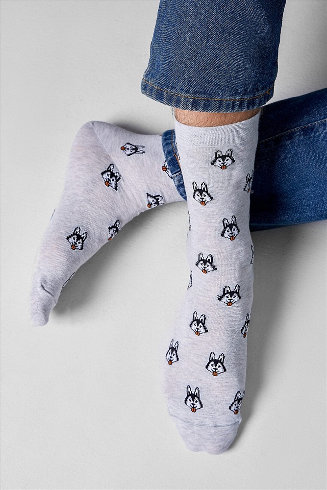 ID товара: 1200419 Состав: 57% Хлопок; 41% Полиамид; 2% Эластан Сезон: Демисезон Основная ткань: Хлопок Вид носков/гольф: Фантазийные Страна бренда: Беларусь Страна производства: Беларусь Мужские носки с узором в виде хаски — это не просто аксессуар, а настоящее настроение для любителей собак! Классическая высокая модель с забавным принтом хаски станет универсальным дополнением к повседневному гардеробу. Состав обеспечивает комфорт и долговечность: хлопок мягко облегает стопу, полиамид защищает от истирания, а эластан сохраняет идеальную посадку. Усиленные пятка и мысок выдерживают активную носку, а эластичная резинка не давит на голень. Принт нанесен стойкими красками, которые не тускнеют после стирок. Эти носки — отличный подарок для владельцев собак, кинологов или просто ценителей четвероногих друзей. Упакуйте их в праздничную коробку — и вы получите готовый сюрприз, который подчеркнет внимание к деталям и чувство юмора. Носки подходят для прогулок, работы или отдыха на природе. Они вызовут улыбку и напомнят о верном друге в течение всего дня! Комментарии к товару