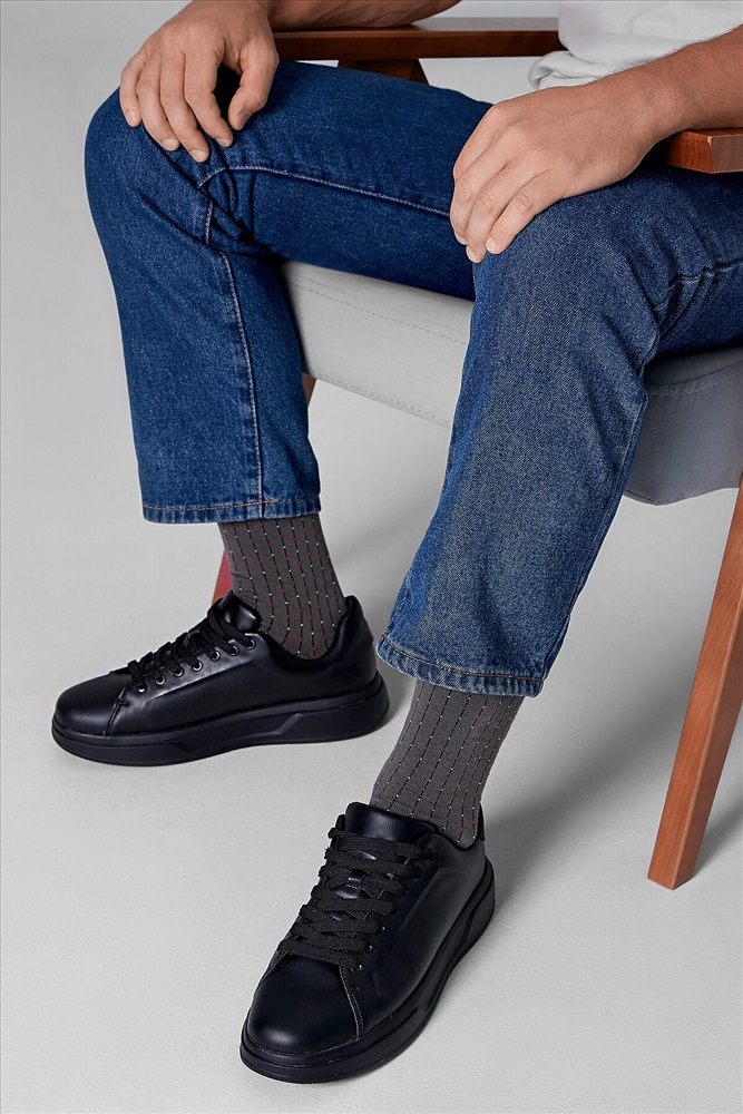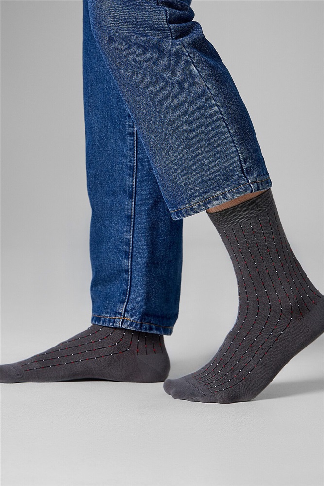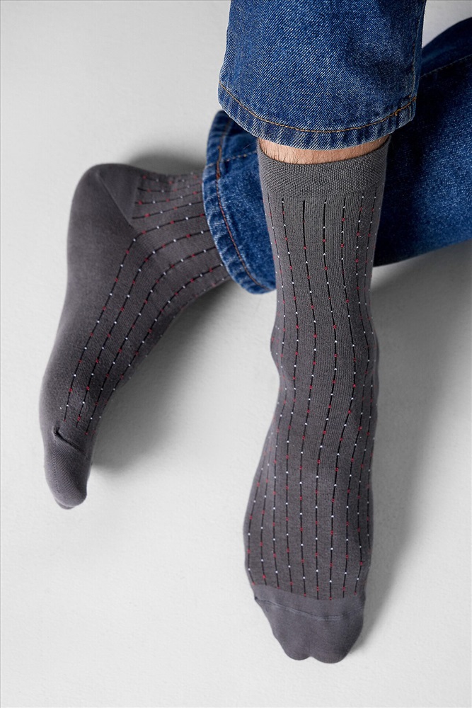 ID товара: 1200420 Состав: 72% Хлопок; 26% Полиамид; 2% Эластан Сезон: Демисезон Основная ткань: Хлопок Вид носков/гольф: Фантазийные Страна бренда: Беларусь Страна производства: Беларусь рис.3322 Мужской носок классический, с рисунком в виде полоски по всему носку. Комментарии к товару