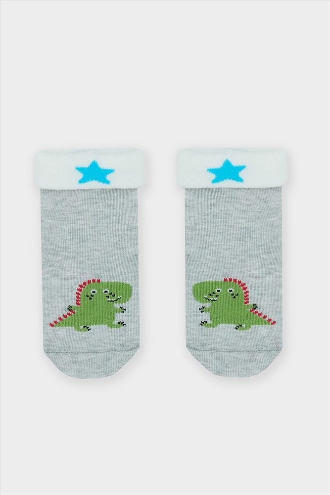 рис.2946 Детские классические носки с отворотом на бортике и рисунком в виде дракончика.