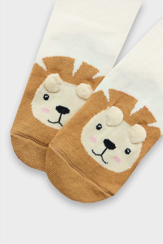рис.2934 Детские гладкие носки без борта, с рисунком в виде львенка и цветным мыском.