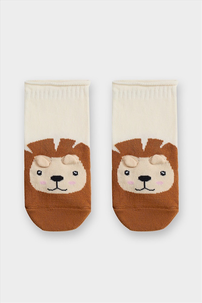 ID товара: 1207289 Состав: 75% Хлопок; 23% Полиамид; 2% Эластан Сезон: Демисезон Основная ткань: Хлопок Вид носков/гольф: Фантазийные Страна бренда: Беларусь Страна производства: Беларусь рис.2936 Детские гладкие носки без борта, с рисунком в виде тигренка и цветным мыском. Комментарии к товару