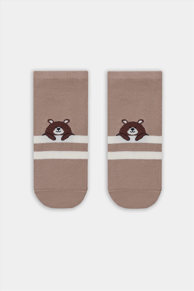 Страна производства: Беларусь рис.3180 Детский укороченный носок с рисунком в виде полосок и мишки.