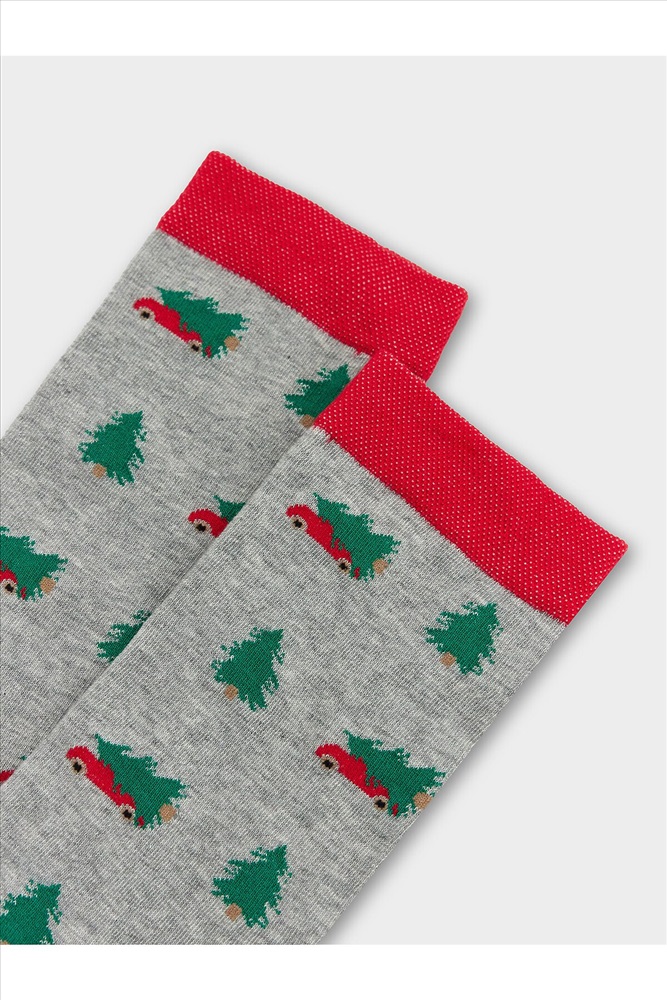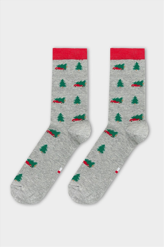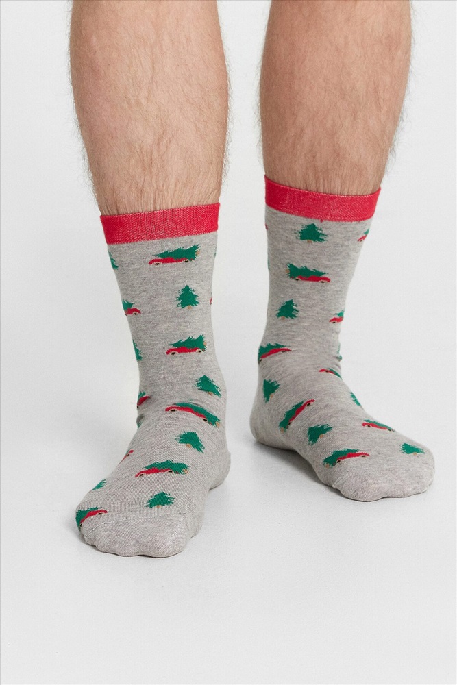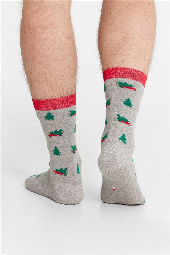 рис.2977 Мужской носок классический, высокий с рисунком в виде елок.