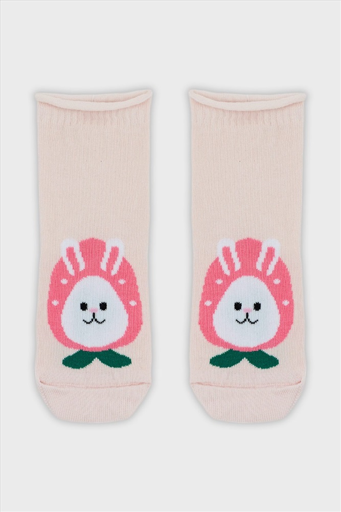 рис.3245 Детские классические носки без борта, с рисунком в виде зайчика и силиконом на стопе.