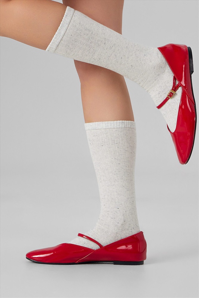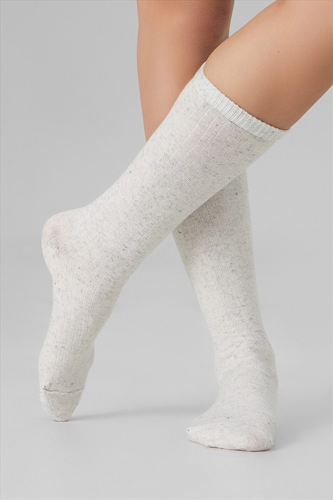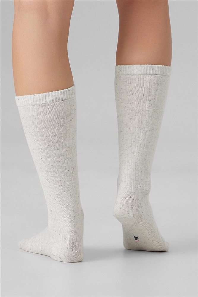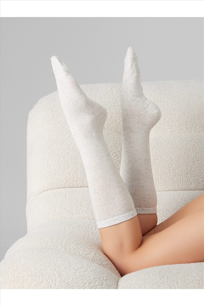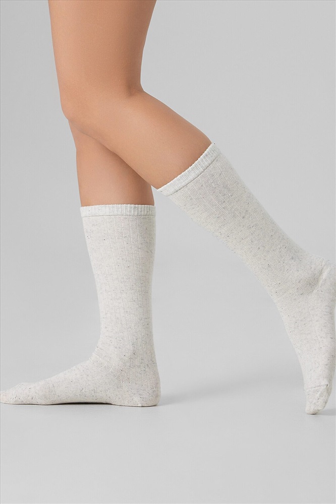 рис.3370 Женские, классические носки с рисунком в виде перекидного переплетения (лапша 5:1) из смешанной пряжи с содержанием шерсти и льна.