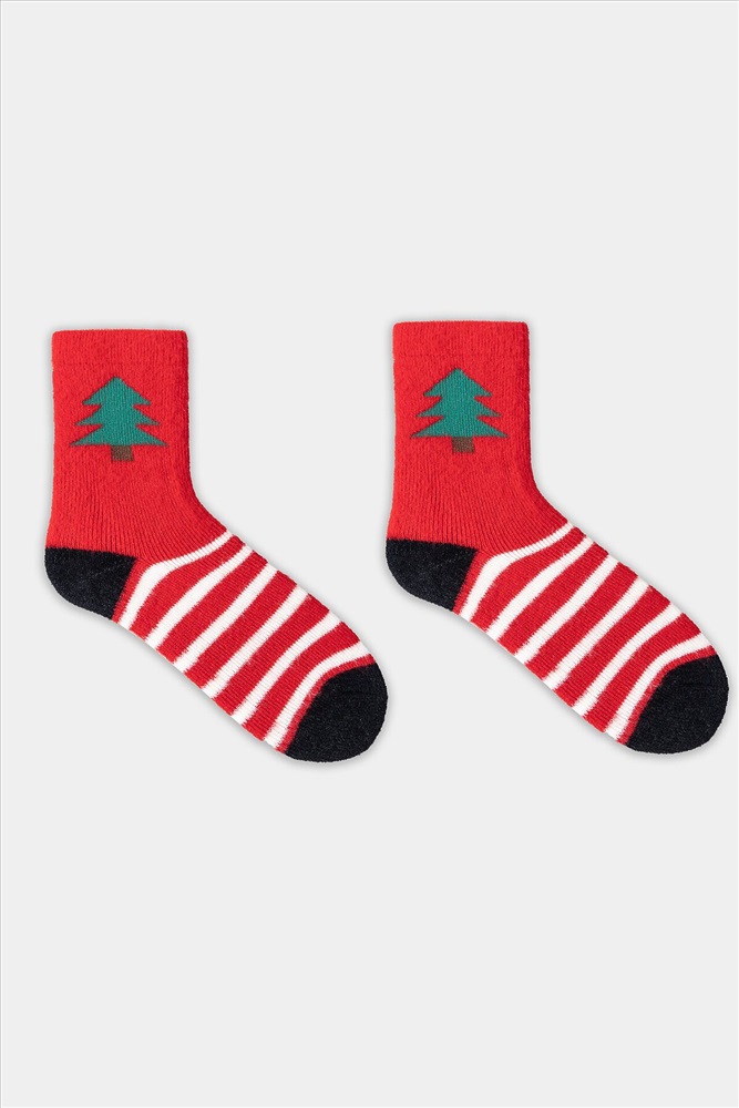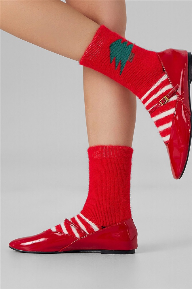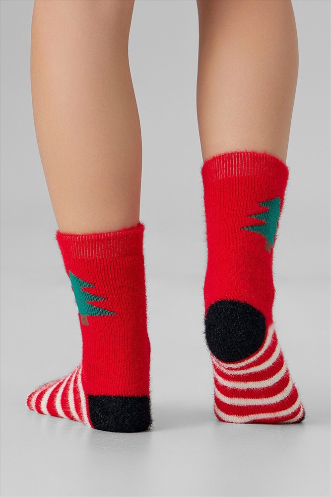 ID товара: 1218608 Состав: 99% Полиамид; 1% Эластан Сезон: Осень/Зима Основная ткань: Полиамид Вид носков/гольф: Фантазийные Страна бренда: Беларусь Страна производства: Беларусь рис.3435 Женские, высокие, плюшевые носки из пушистой пряжи с рисунком в виде елки. Комментарии к товару