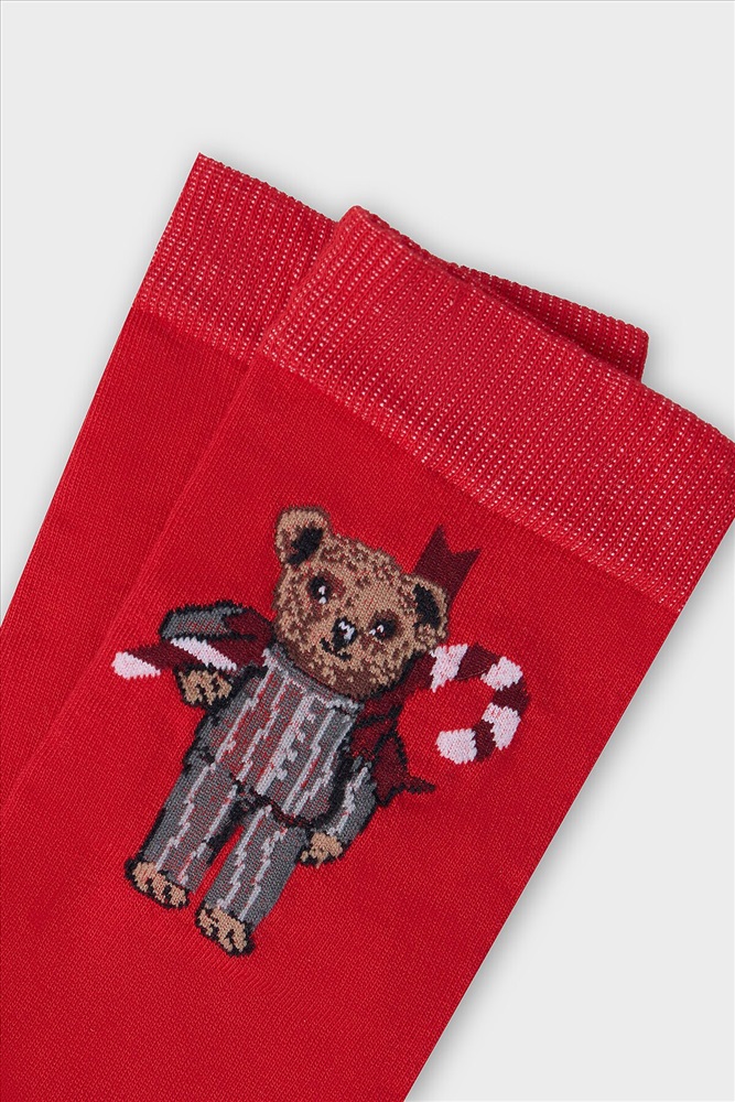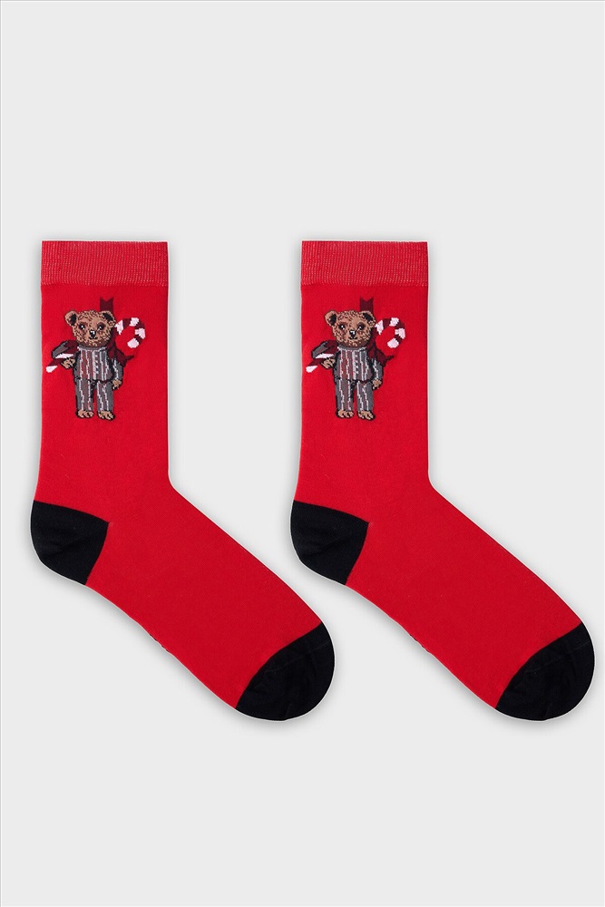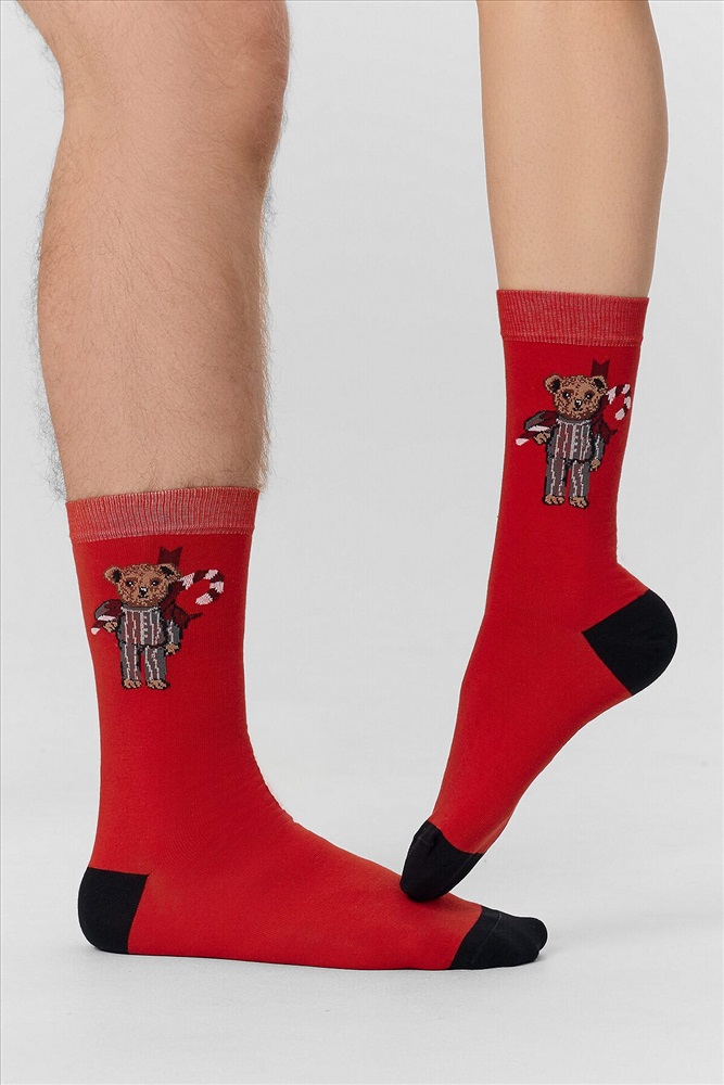 Рис.3454 Носки унисекс классические с рисунком в виде медведя и надписи.